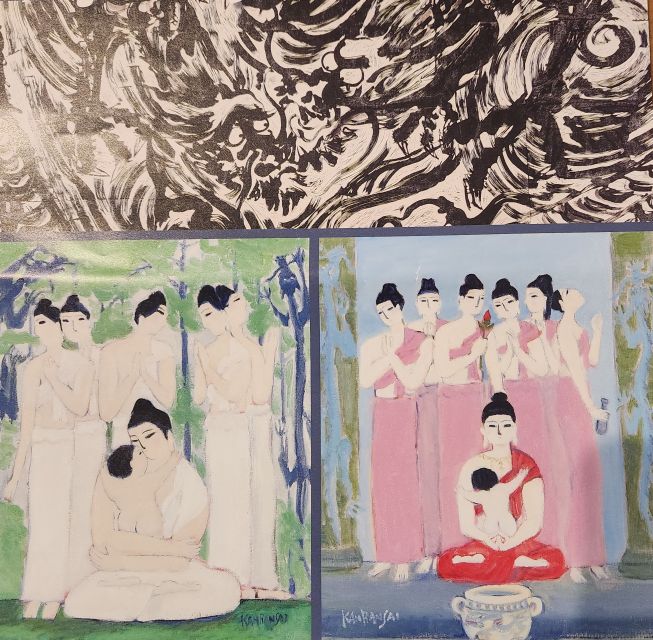 Leaving the halls, we visit the Meido, the residence of the Monk Kukai, the founder of Shingon Buddhism. Now though, it is used as an exhibition hall, today for a special exhibit of the painter Kanransai whose paintings are all themed around families and children, and the Kannon’s power to gently soothe and heal. More whimsical than orthodox, the paintings are sweet and gentle – and definitely soothe the soul. There also some wonderful wood engraving prints he has created.