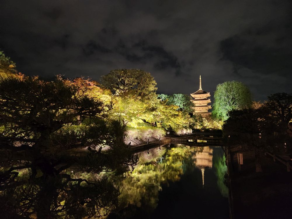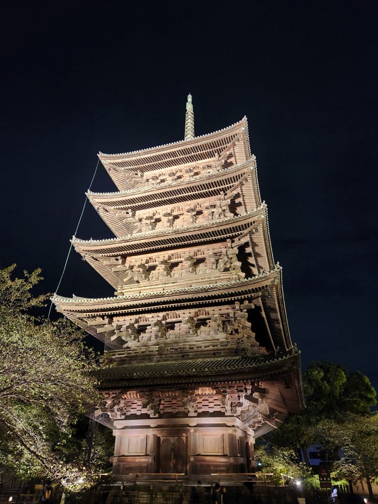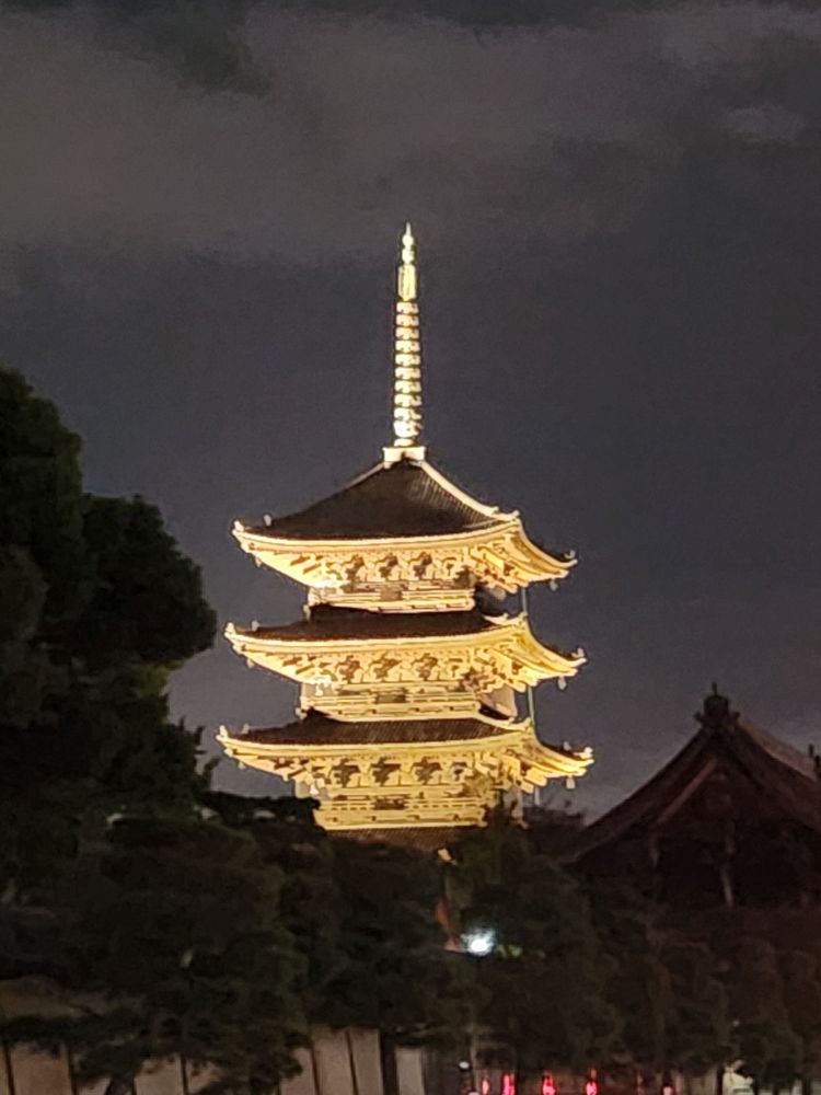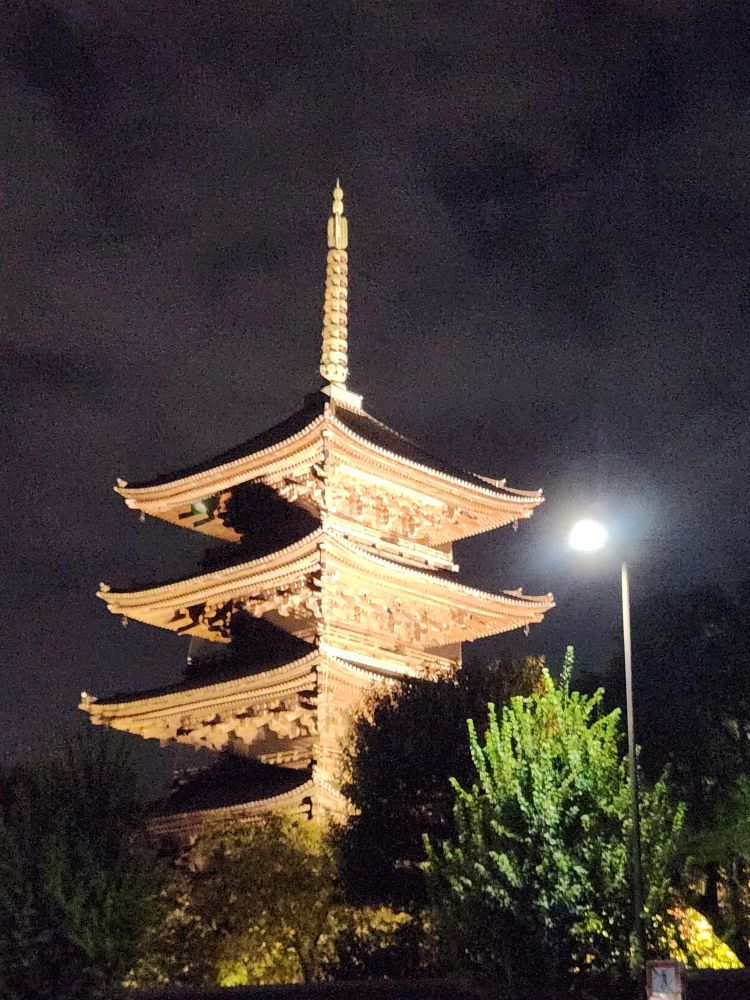 You can go into the Kondo and Kodo – and they are lovely – the statues all lit up But the main event is definitely the Pagoda and surrounding gardens. And because we are so early – in the season and the time of night – it isn’t crowded in the least. Even better.