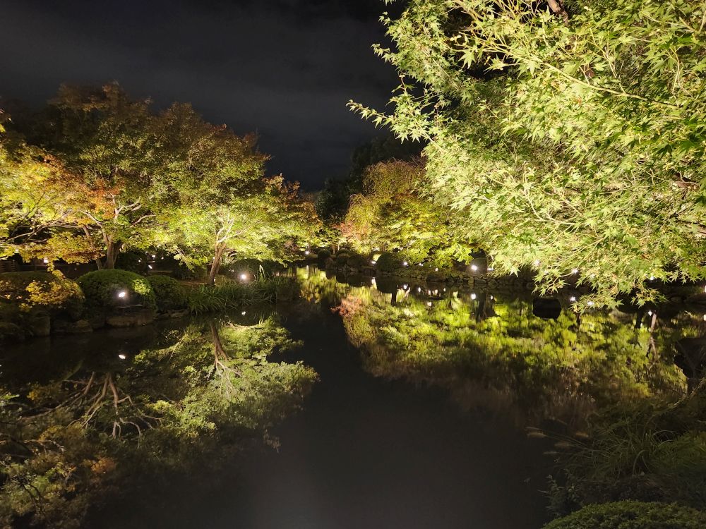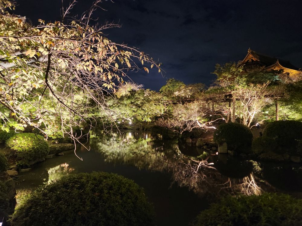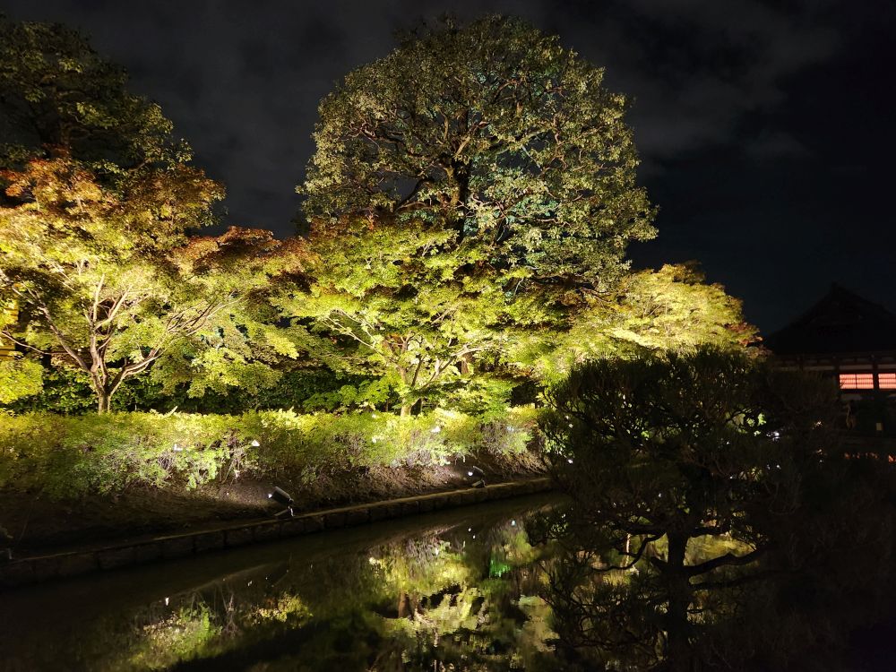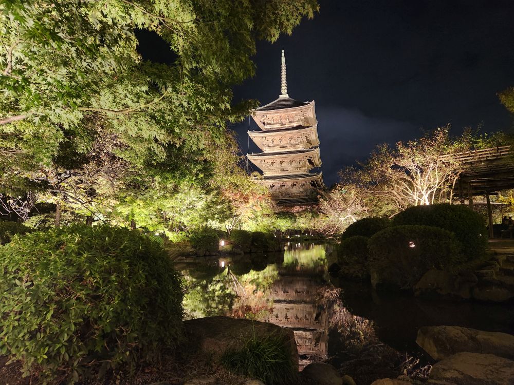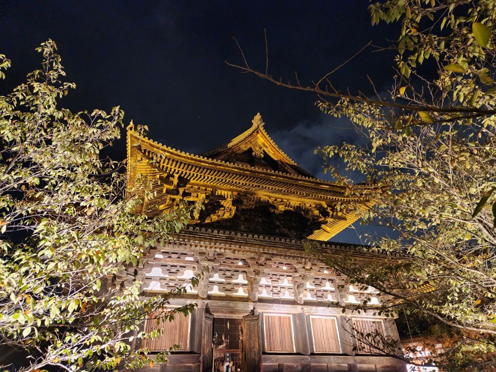 You can go into the Kondo and Kodo – and they are lovely – the statues all lit up But the main event is definitely the Pagoda and surrounding gardens. And because we are so early – in the season and the time of night – it isn’t crowded in the least. Even better.