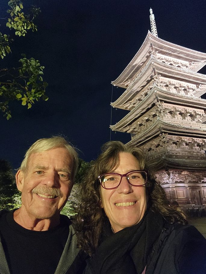 In the Kodo, originally built in 835, it’s present version being built in 1491, there are 21 statues placed according to the mandala that is central to the Shingon Buddhism sect. while the Mandala is usually drawn in only 2 dimensions, the Kodo is said to the be a 3-dimensional version of the mandala with Dainichi Nyorai, the principal Buddha, in the center. Here we get to walk all around the statues – so we can see all 3 dimensions. It is hard to describe – and we know the brochure picture does not do it justice, but it is a very spiritual and magical place.