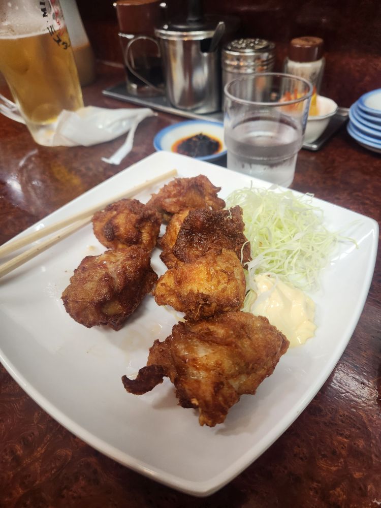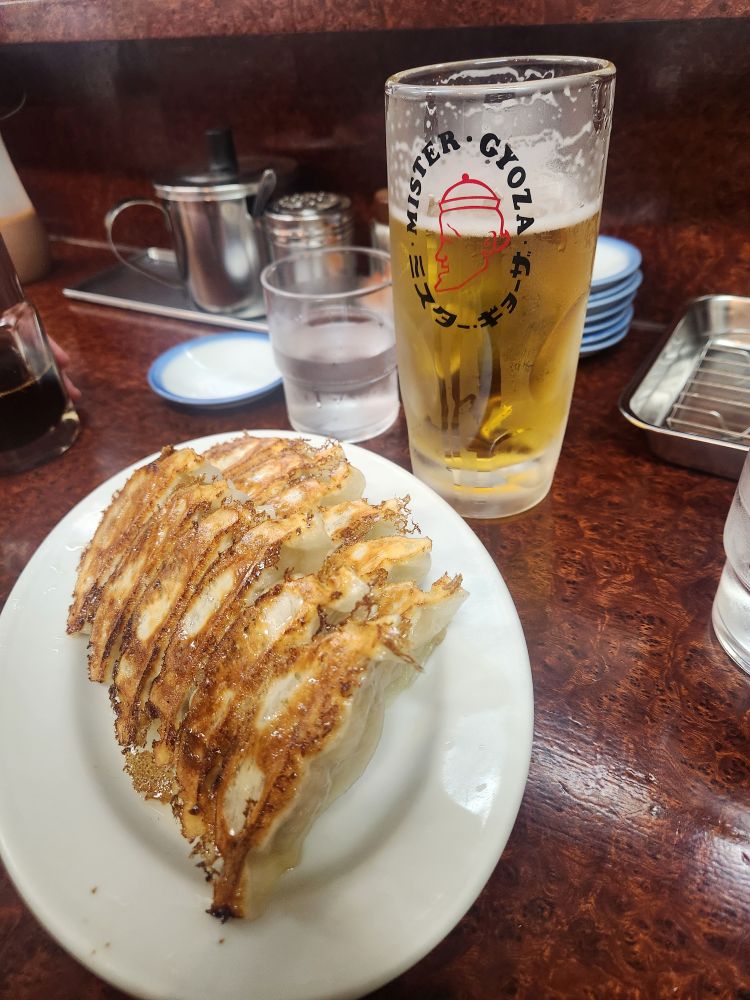Now it is time for dinner. There really aren’t many options in this area, but there is always Mr. Gyoza, the little hole in the wall gyoza place we tried to go to last night. Tonight we are more inclined to stand in line, and we are pleasantly surprised to find it isn’t that long. We are 3rd, and after only about 10 minutes we are led to our counter seats where we have the best gyoza (12 pieces) and Karage (fried chicken – 6 pieces) and a beer for $12. Love it!