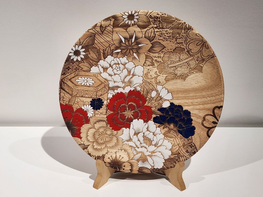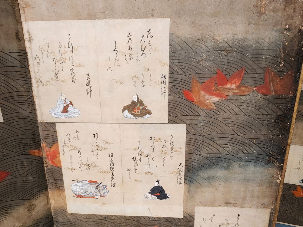 There are also representations of the vehicles used for Gods in festivals, a fabulous six panel folding screen depicting a poem and its poet, with 50 hand drawn sheets depicting the scenes. Then one of my absolute favorites – stenciled wood plates using katazome, the traditional dyeing technique usually used for kimonos. Gorgeous.