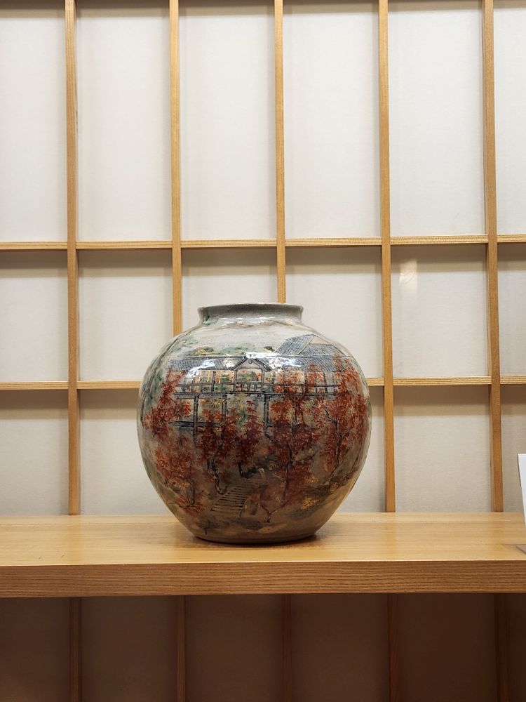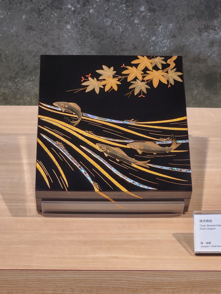 Completing our explorations we wander through the Design museum, which is just a series of paintings and kimonos in glass – and free to view. One of the exhibits though focuses on the “Autumnal hues” with lovely pieces depicting the fall leaf colors – of which we are sadly, a bit too early to see. Nice way to spend a morning!