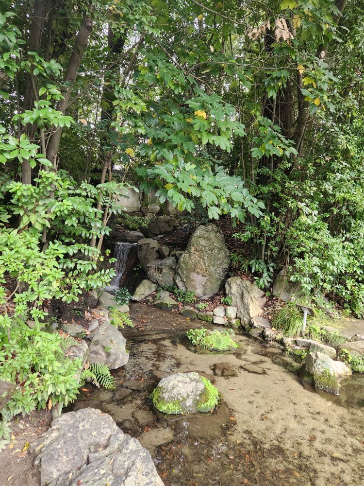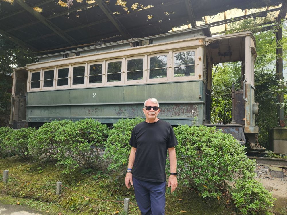 It is a beautiful day – sun mixed with clouds, a nice cool breeze that helps when the sun is out at full strength (it gets really hot!). We meander through the pretty different garden areas – each including design features from different periods of history. Including one of the earliest electric trams in the city, circa 1895. It was powered by Hydroelectricity! Wild. Then there is the strolling garden from the Heian period, with weeping cherry trees.