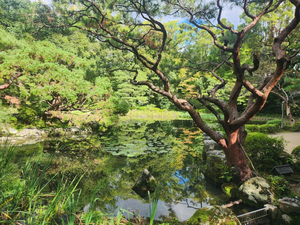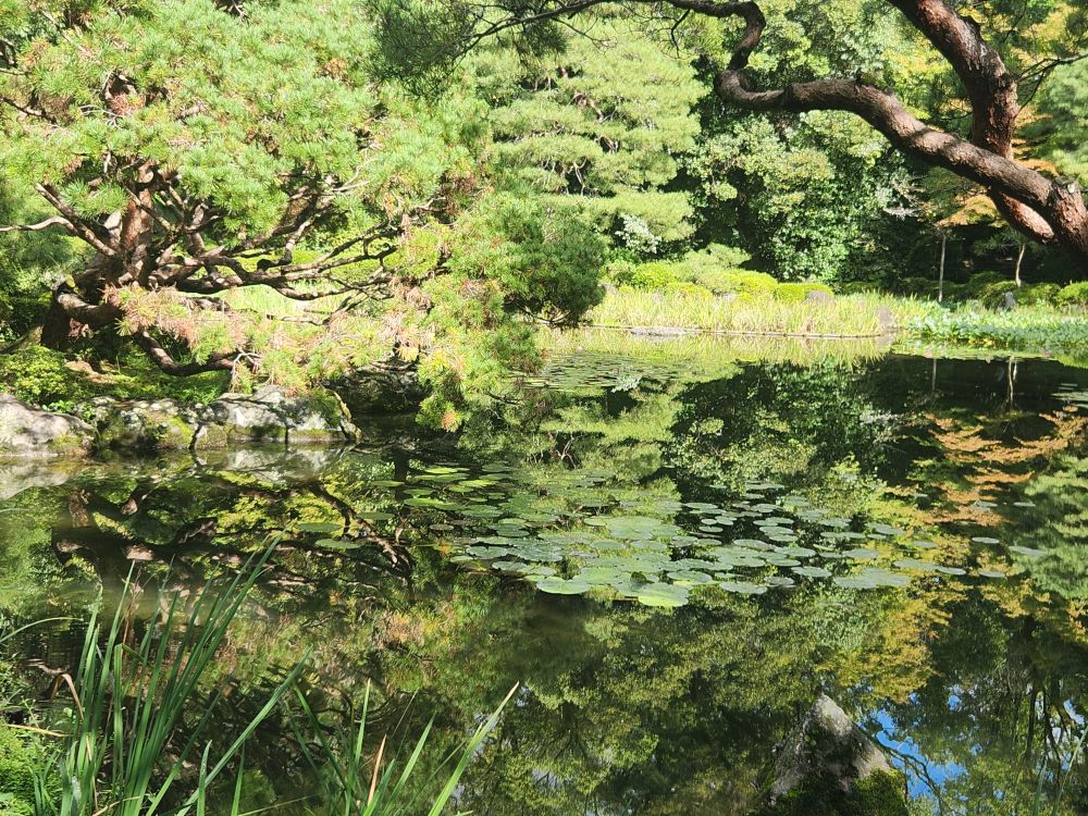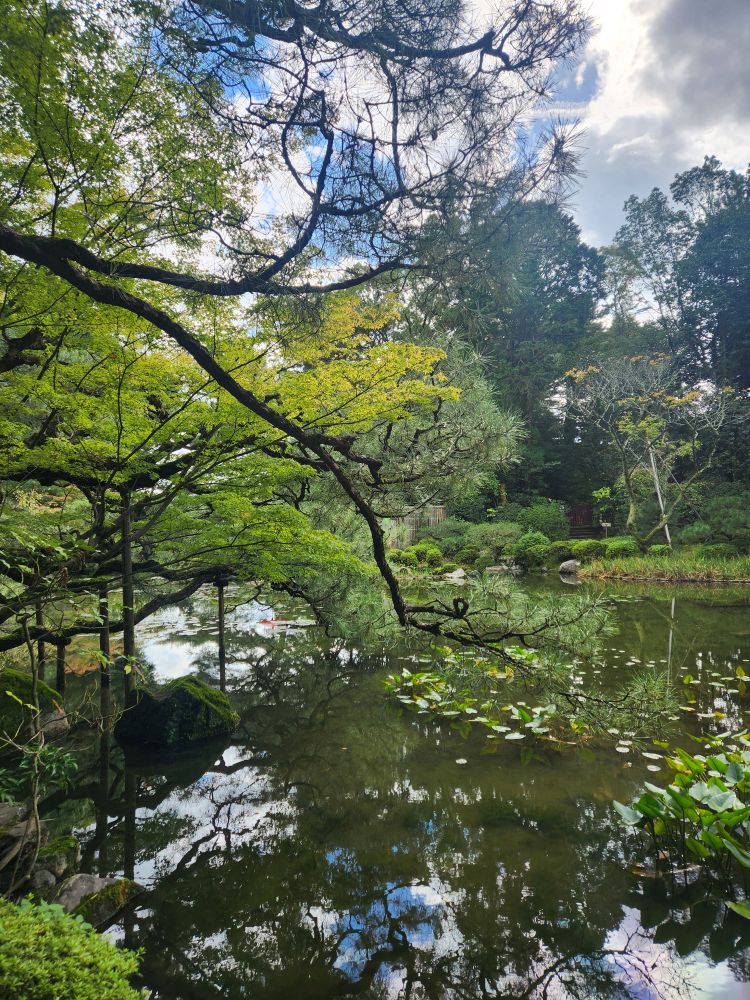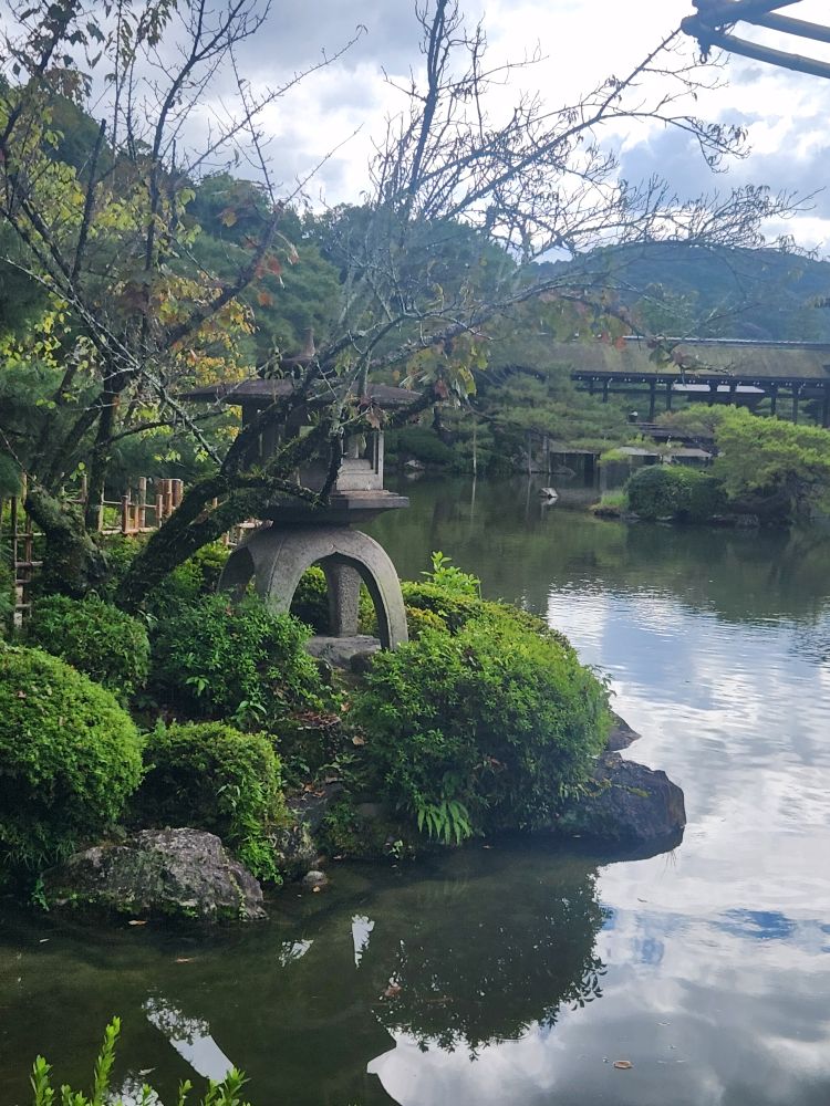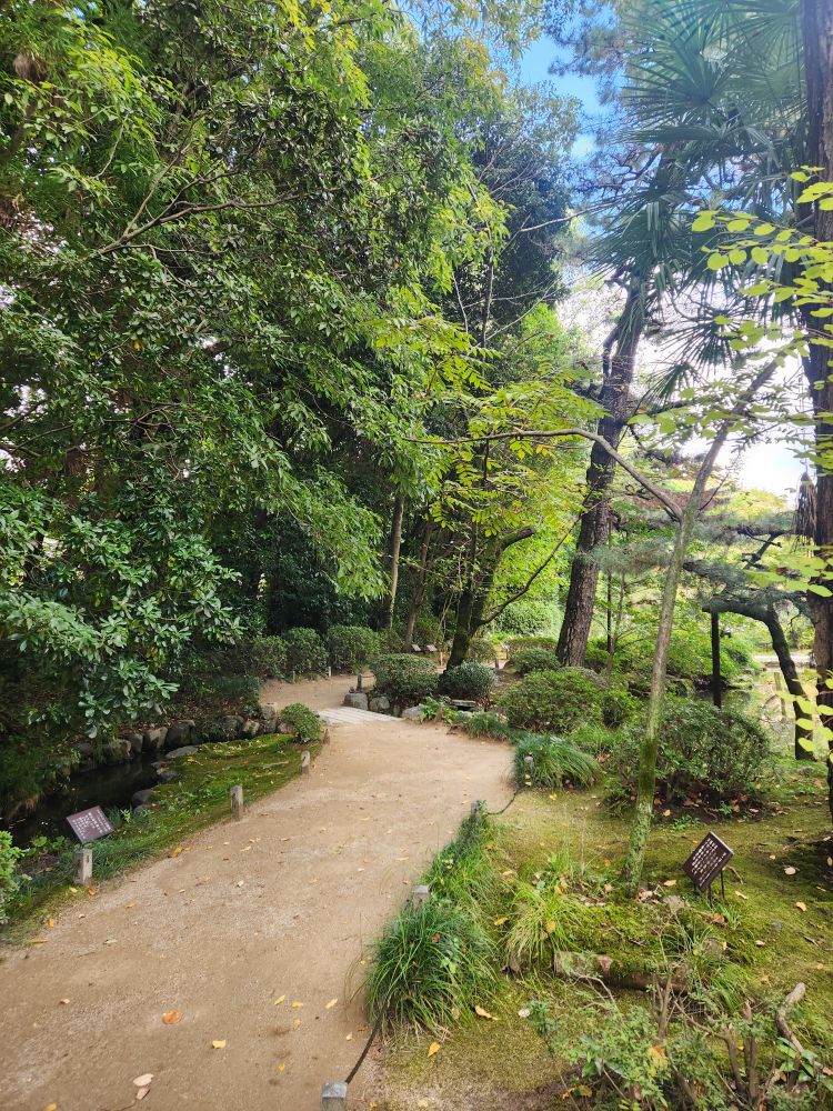 Not to mention the huge lake that we circle, with fabulous views of the rocks and the trees and the stepping stones called Garyukyo, which means hidden dragon bridge,” from the wandering path the stepping stones take across the pond.