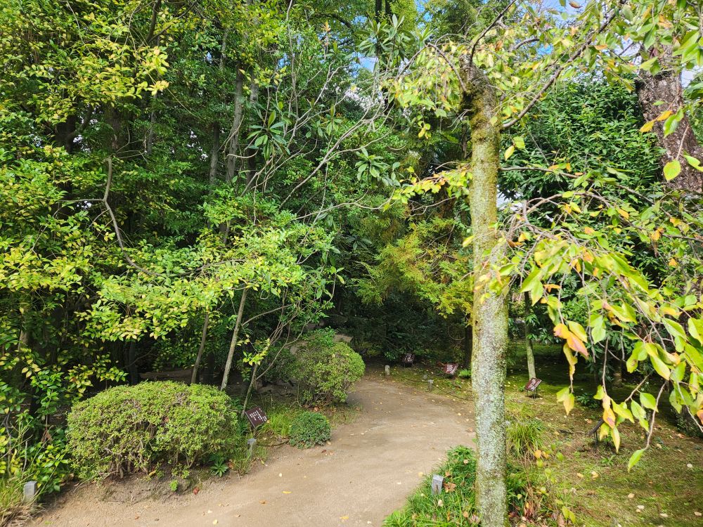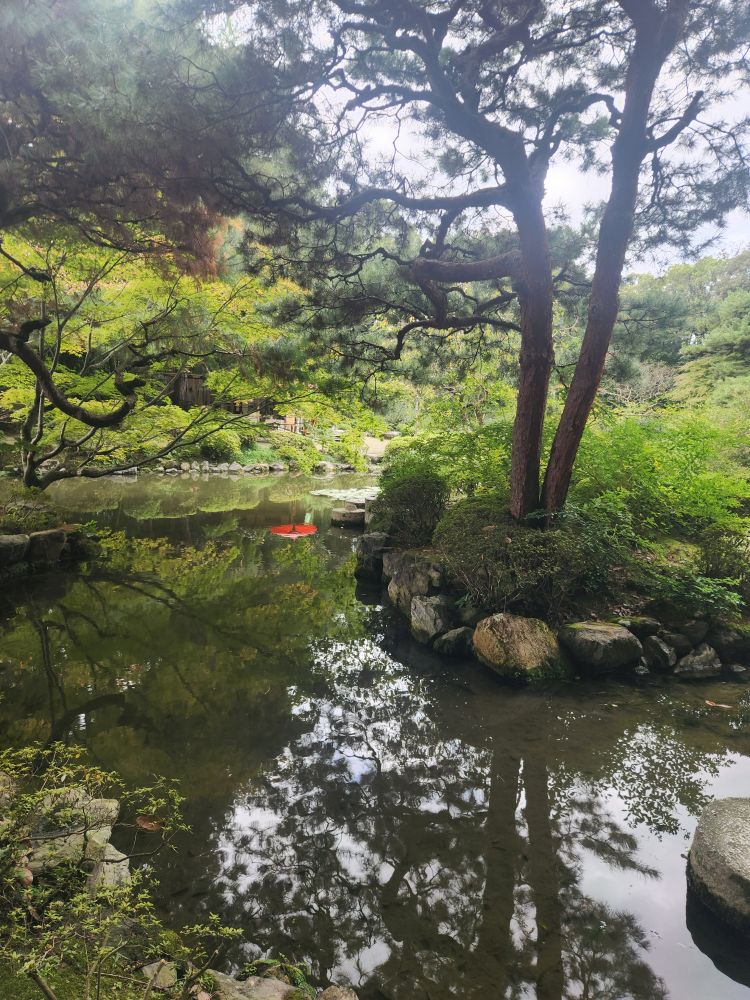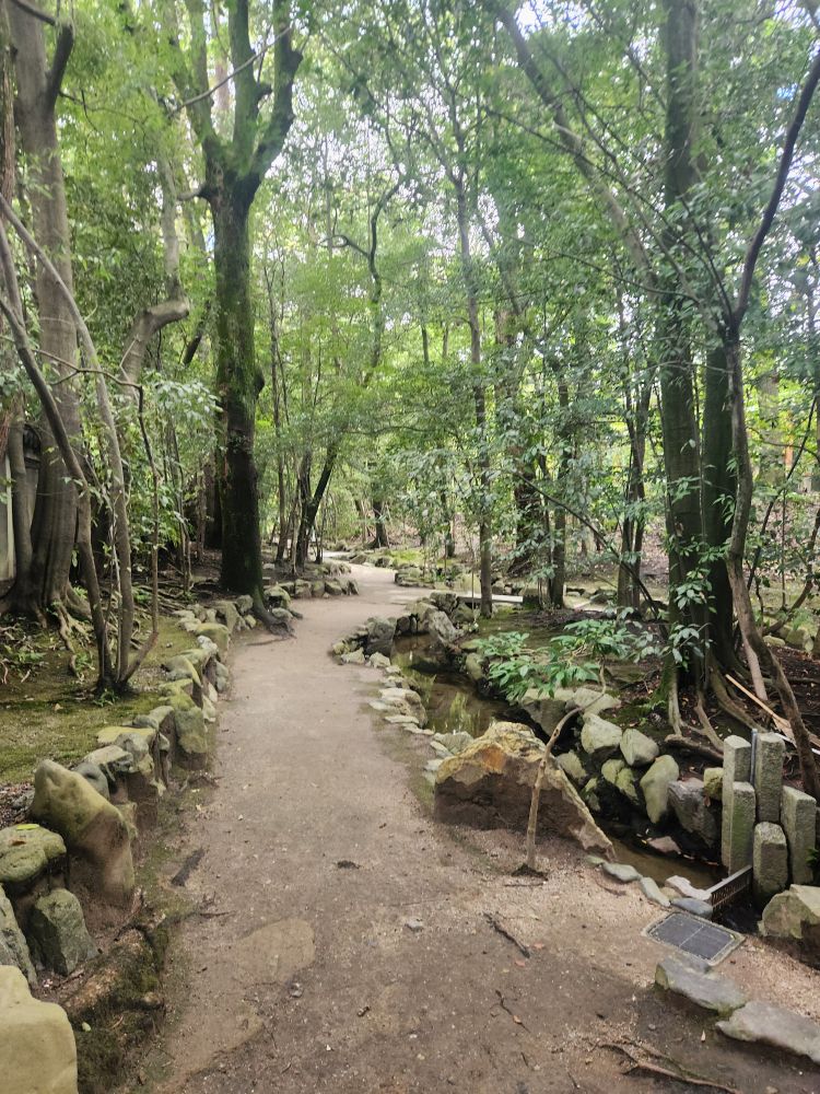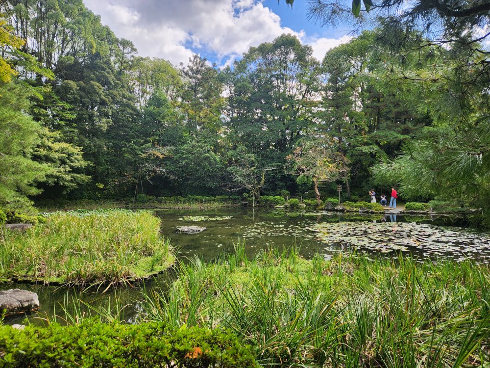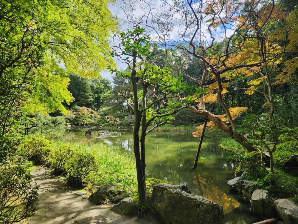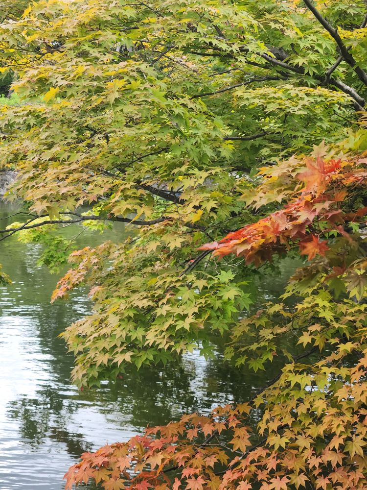 Not to mention the huge lake that we circle, with fabulous views of the rocks and the trees and the stepping stones called Garyukyo, which means hidden dragon bridge,” from the wandering path the stepping stones take across the pond.