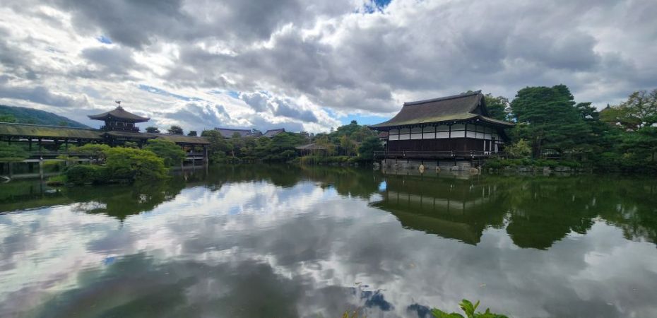 Then it is onto the gorgeous traditional bridge that spans the width of the pond with different shrine buildings on either side. Serene and beautiful. A wonderful way to end our explorations of Kyoto!