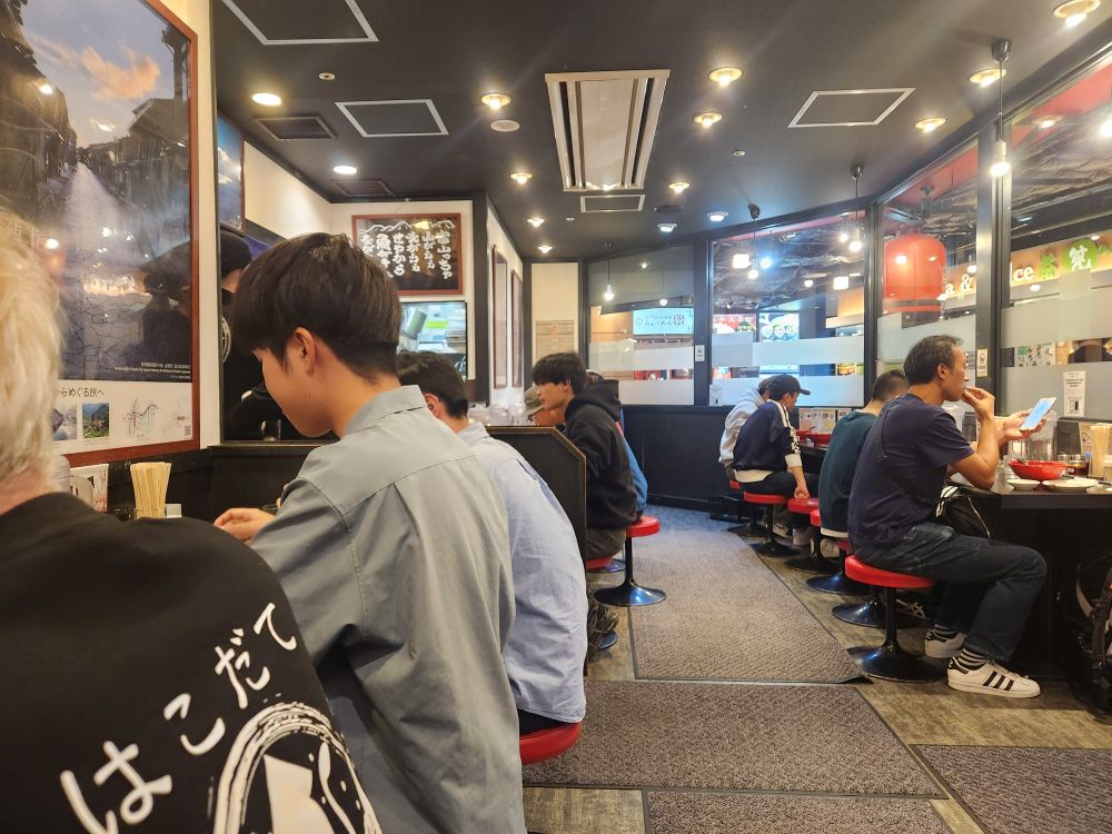 Back to the subway we go – this time stopping at Kyoto station for lunch. We hit the huge crazy 11 floor station structure and find a wonderful little Ramen place, Ramen Iroha, where we order on the kiosk machine, then sit down to a great meal of Black ramen (black soup – sort of fish stock based maybe?) and gyoza. Perfect in everyway.
