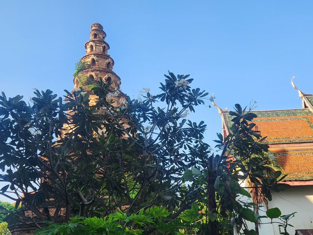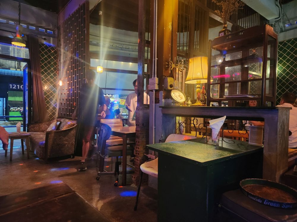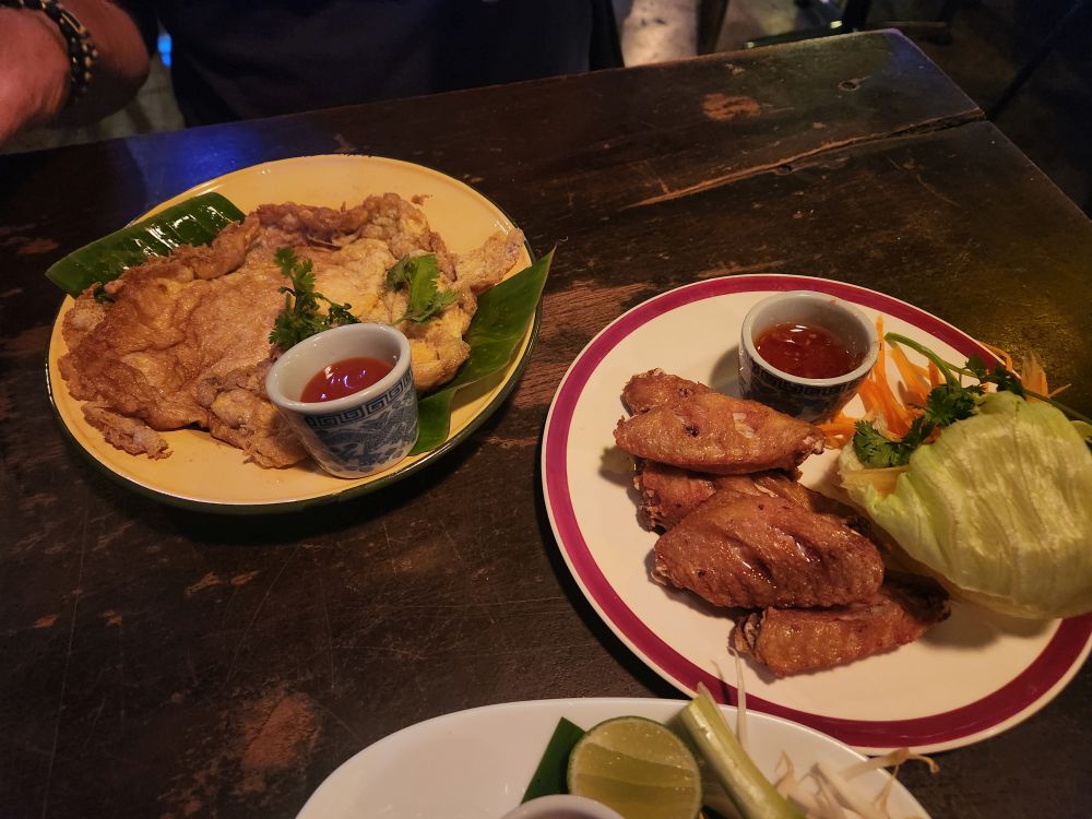 Pushing aside the branches, we head off for our normal morning routine, walking the park, coffee at Minimal, breakfasting back at the house on Jackfruit and oranges and toast. Then just sort of lolling away the day, organizing the suitcases and getting ready for our long travel tomorrow. Lunch is leftovers – have to empty out the fridge! Then later we decide to hit the corner bar, Chai, for dinner. They are actually a restaurant with a huge menu, we like the atmosphere, so why not? Pad Thai, a Thai omelet and chicken wings. It’s a nice last supper for our visit here.