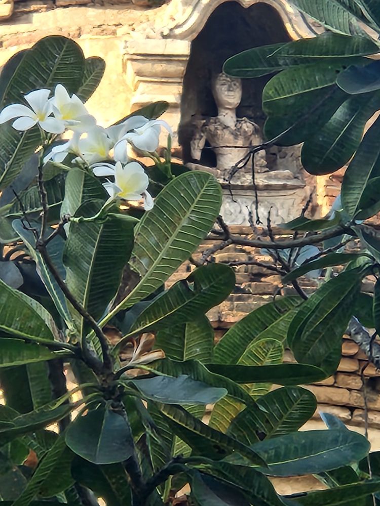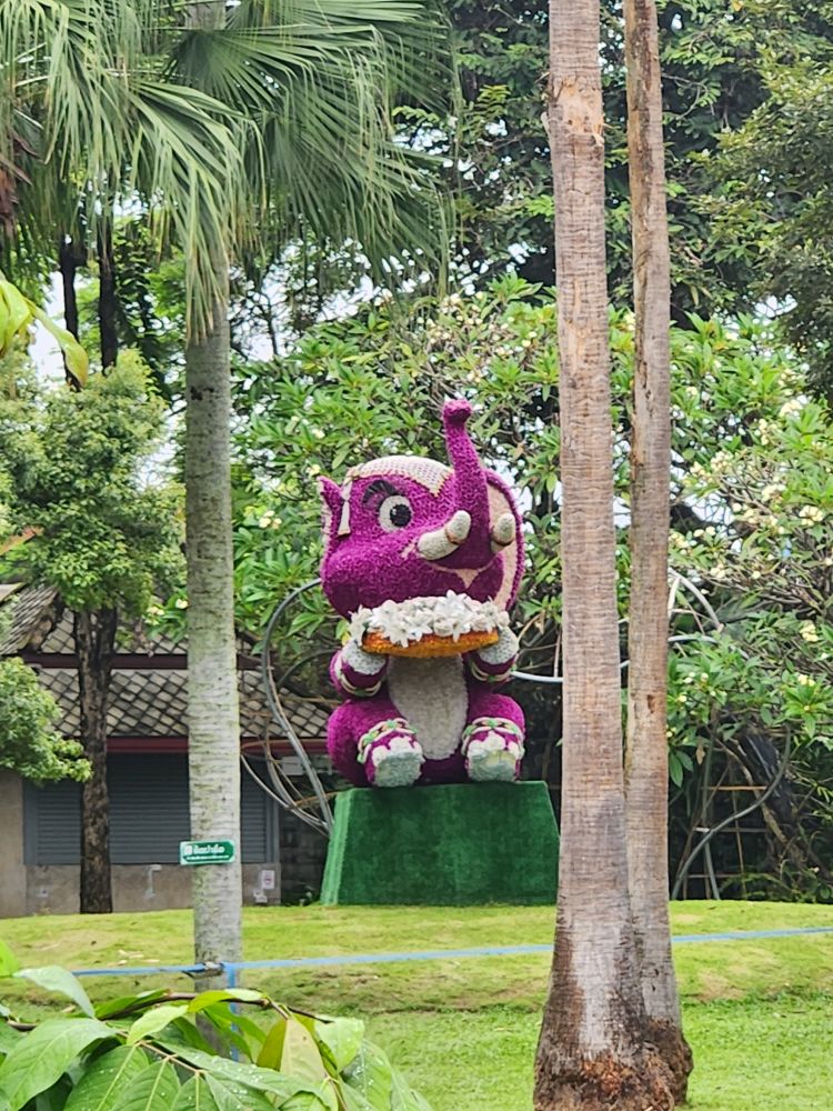 Wednesday 11/6 – Overcast morning, but nice and cool. We are studiously avoiding any news about the elections at all. Can’t do it! So, off we go for our normal morning stroll, around the park, finally taking pictures of the cute one-eared elephant and the sign left over from the previous Flower Festival. Then, yes, coffee at Minimal, a trip to the grocery store in search of ground coffee – not to be. Too expensive and we only have a few days left – we have our drip bags just for this purpose. On to the morning market for fruit – jackfruit, pomelo, way more oranges than we need (1 kilo for 40 baht – that’s a little more than $1 US). I was actually in the market for bananas, but after the 1 kilo of oranges, decided to pass on the bananas.