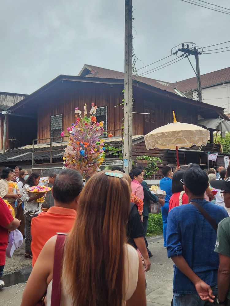Thursday 11/7 – Same, same, no different. Well sort of different. We go for our walk in the morning, after deleting various social media apps, and get caught up in some celebration by one of the Wats on the way to the park. Hundreds of people lining the soi with lots of offerings for the monks, chanting a happy chant (so obviously not a funeral). We have no idea what it is all about, but it makes for a fun little diversion in our normally quiet walk.