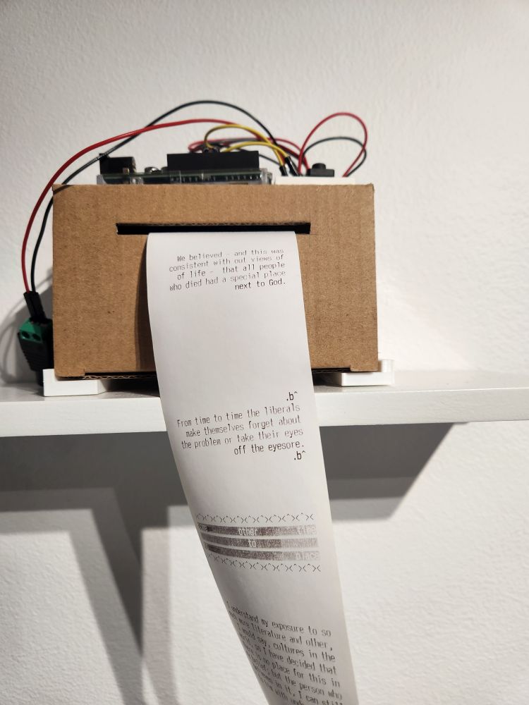 Another exhibit has these weird little receipt printers that print out automated messages on some algorithm that are meant to be hypothetical conversations between Steven Biko, the late Black Consciousness thinker and Winnie Mandela.