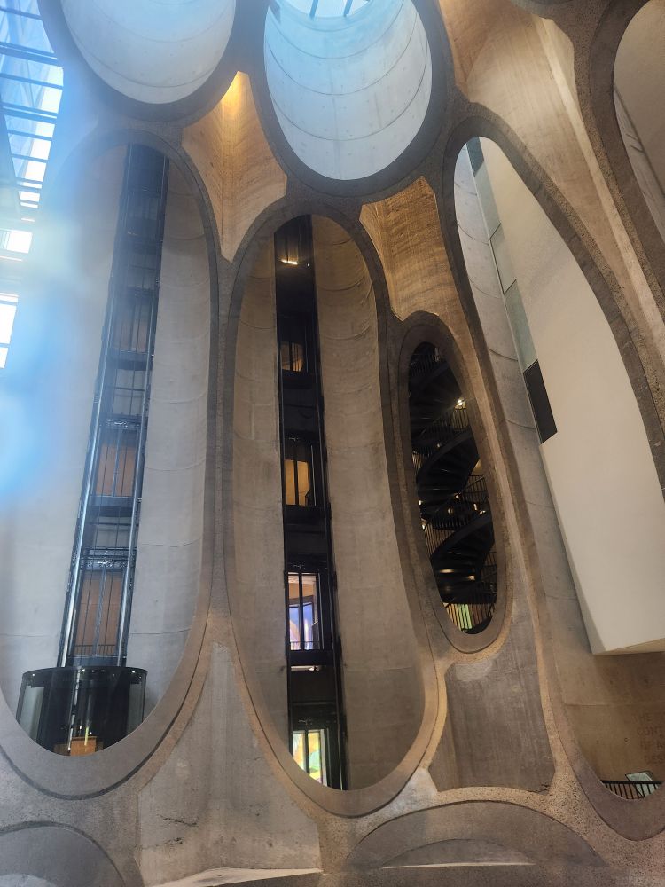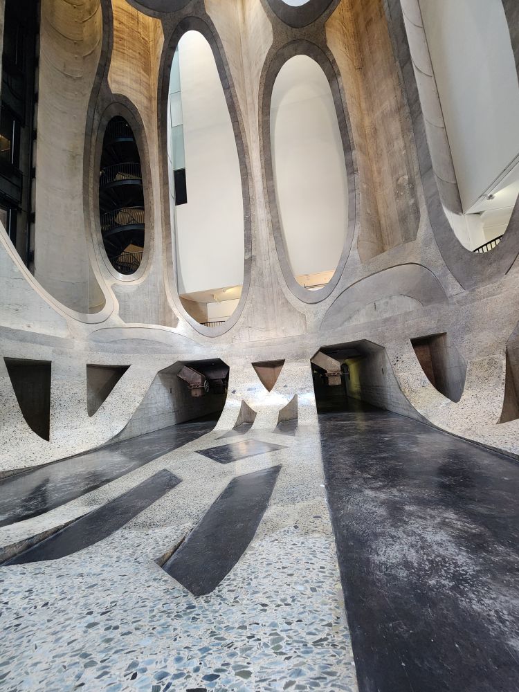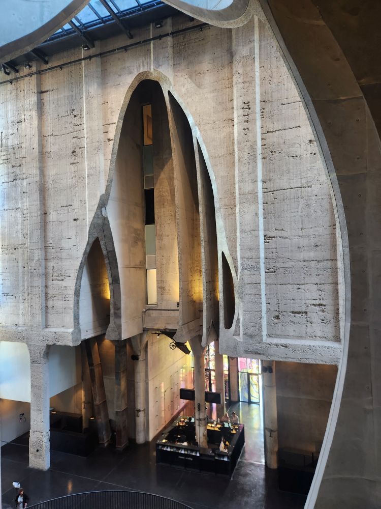 Before we leave, we wander through the building architecture and history exhibit which details how the building started in 1924 as a grain silo and continued in use through 1980 when government subsidies ran out and Cape Town was no longer a viable grain port. In 1987, the silo was leased to a co-op that operated the facility until 1995. It stood abandoned for 20 years before construction began on the museum. It took over a year and 3 million person-hours to cut through the concrete tubes of the silos to form the new atrium and gallery spaces. 3 years later the museum opened – with a goal to collect, preserve, research and exhibit contemporary art from Africa and its diaspora. Totally great way to spend a few hours in Cape Town.