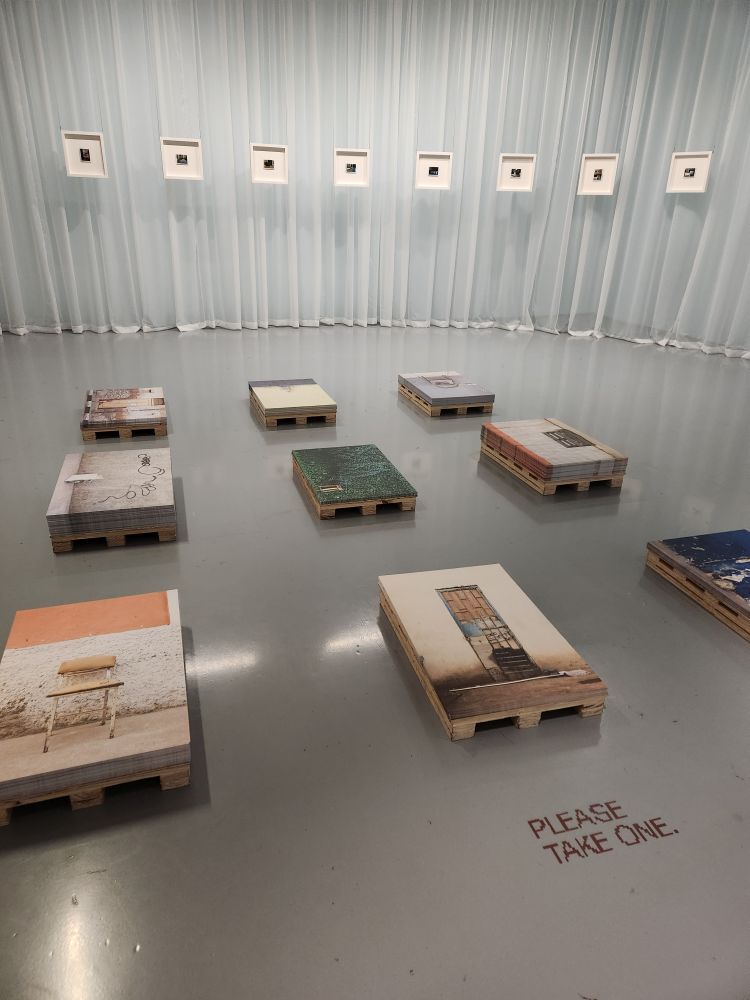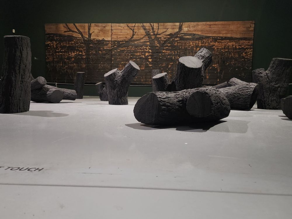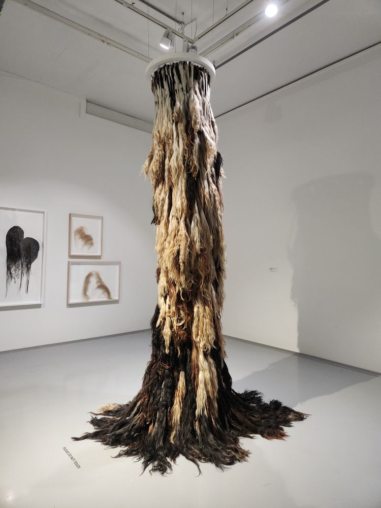 Down on the next floor, we start exploring with an exhibition by Tuan Andrew Nguyen – a combination of film and sculpture that focuses on the issues and challenges presented by colonization and war. The first film is about a woman whose father is a Moroccan who was in Vietnam during the war, wedded a Viet woman and had a daughter. He then died and she is left with the legacy of being half Vietnamese. The title is “Because No One Living Will Listen. Moving and poignant – and the film composition is nothing short of incredible. Split screens with the same audio (and translation in English) but showing 2 different views of the commentary.