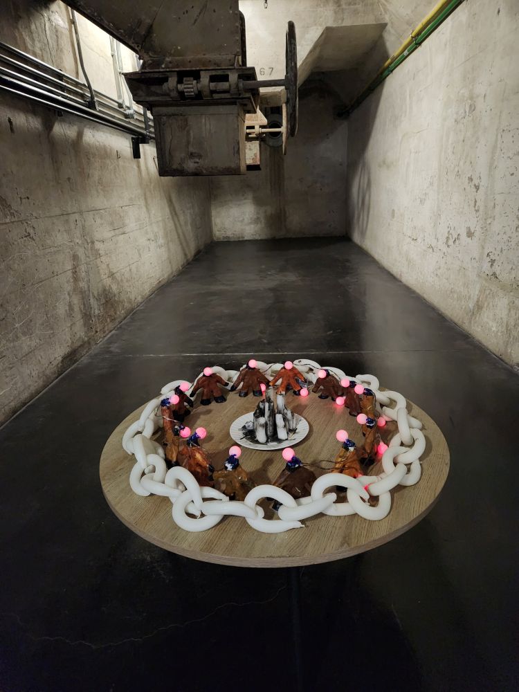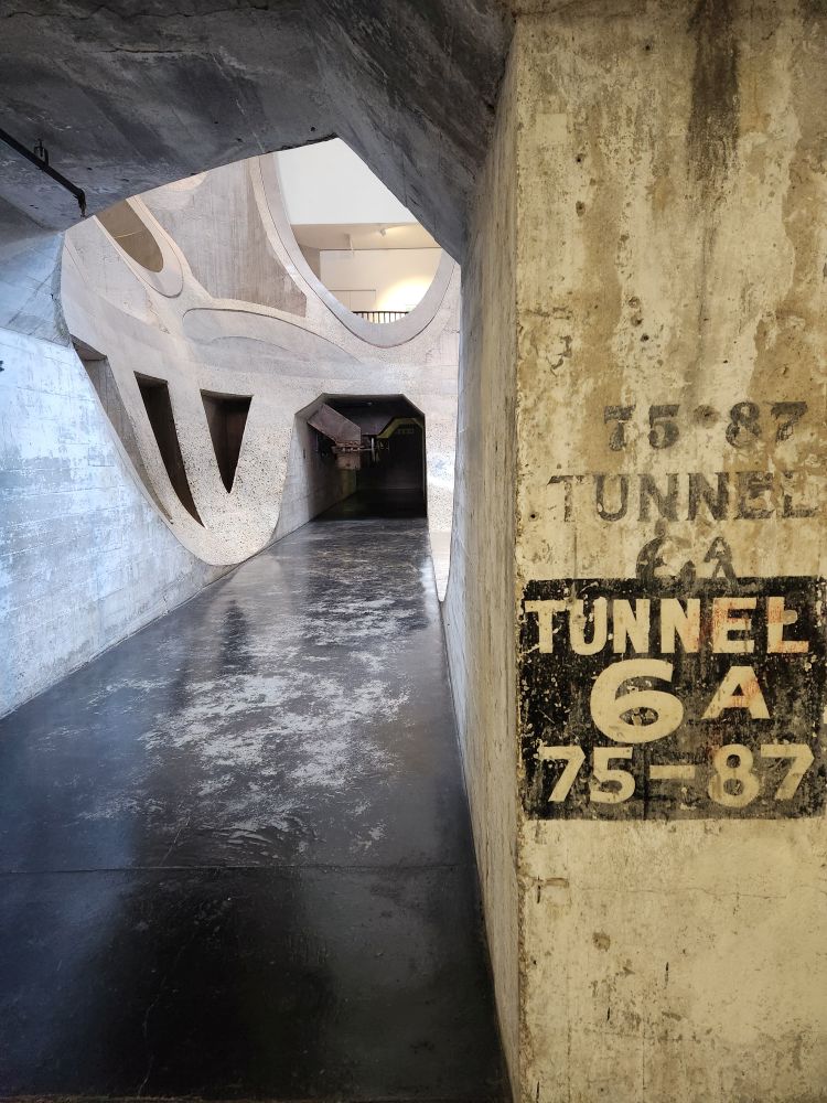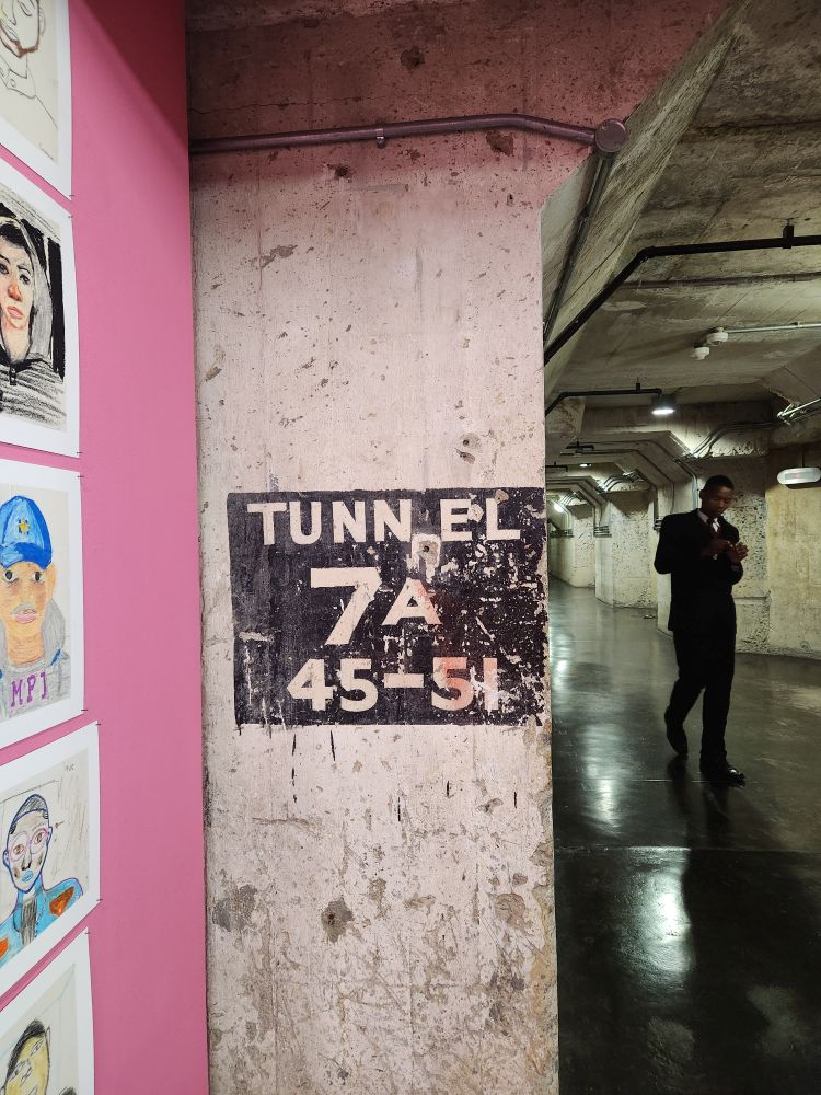 To reach each floor of exhibits, we walked down this awesome wrought iron spiral staircase, with views out into the center of the silo. The building itself was one of the best features of the museum! At the end of the art exhibits we can go into the basement of the building and walk through the tunnels of the old silo. Even here though there is art, a nice exhibition of local children’s artwork, placed and hung strategically through the tunnels.