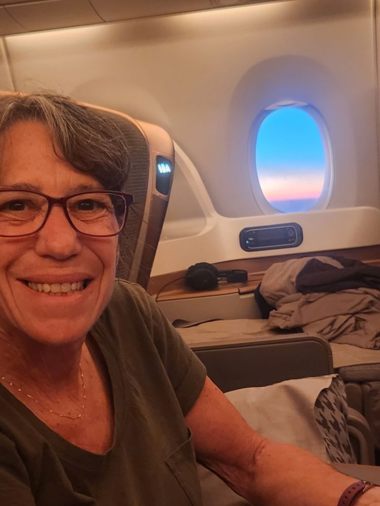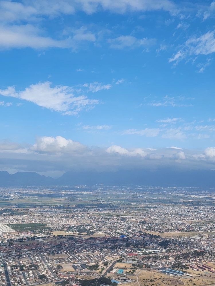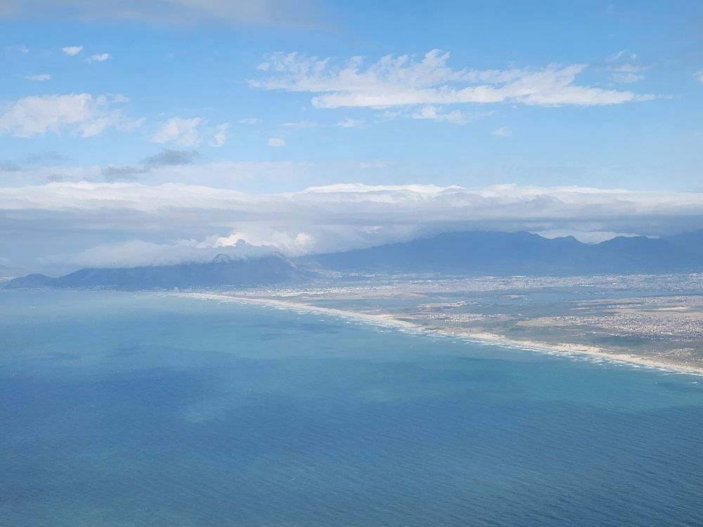 The layover in Johannesburg allows us time to stretch and move around a bit. About 70% of the passengers deplaned here – leaving us with virtually no one in our cabin. We all hang out while the cleaning crew arrives, have our passports checked and then we are off again for a quick flight to Cape Town. And since the cabin is virtually empty, I got to hop into the window seat for pictures as we land. Perfect.