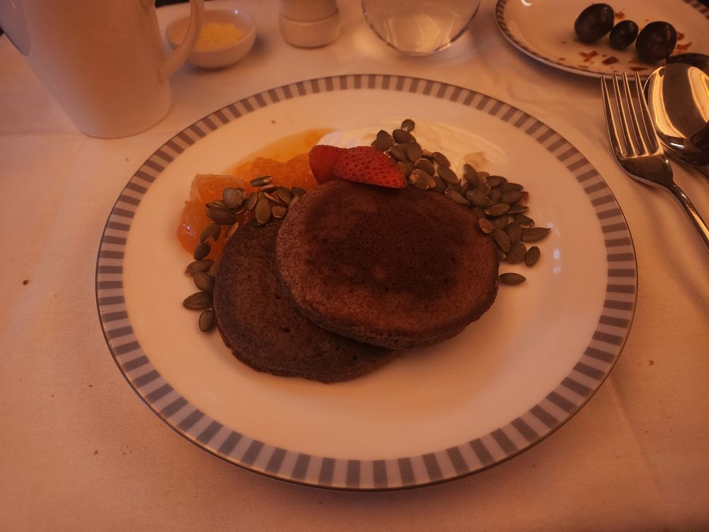 We manage a decent night’s sleep and then have our book the cook breakfast! Ed got the Lobster Thermador! Hey – no way we could have eaten last night, but for breakfast? Ok – game on. And it was delicious! I had the pumpkin buckwheat pancake which was very good as well – but oh so totally filling!
