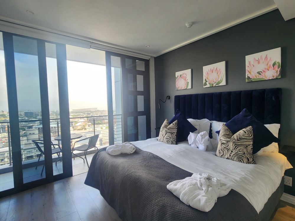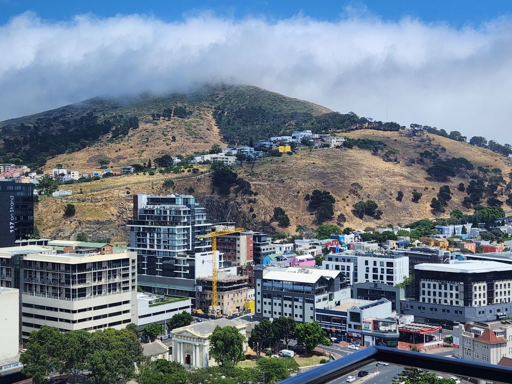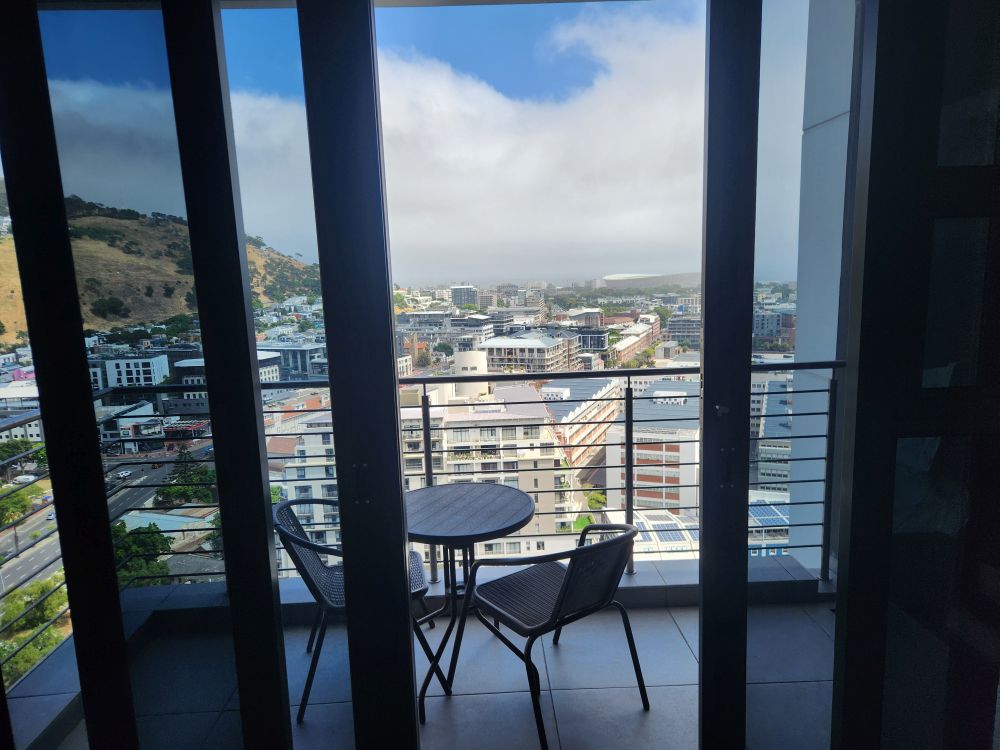 On the ground, passport control is once again a breeze. So fast and easy. Our luggage comes out really quickly and we are out into the arrivals area to meet our driver, Kingston, in a flash. So fast in fact, Kingston is amazed! We chat with Kingston all the way into the CBD and the Urban Elephant on Bree apartment. Checking in here, we have our pictures taken for facial recognition – this is how we get in and out of the apartment building. There is a little confusion about getting into the apartment as the manager is supposed to meet us, but the guard calls him, and they come over after about 5 minutes to show us around this cute little 24th floor abode. It’s an adorable place – and it looks brand new – with a fantastic balcony overlooking Signal Hill and the harbor. A great place to hang for our few days here.