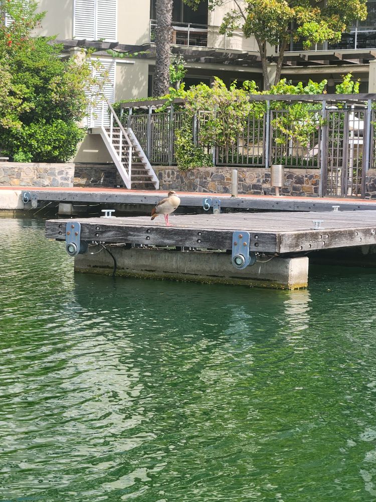 Completing the circuit, we hop off at the Aquarium and then take the included canal boat ride. We’ve not done this before and quite frankly are amazed at all the canals and the buildings around them. This is another high dollar district, with a huge hotel and lots of condos and apartments that celebrities own. It is beautiful though, and quite fun to do something a little different here for a change. And as a bonus, we see 2 Egyptian geese along our route.