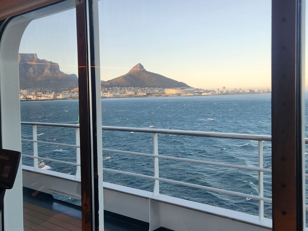 We sailed! At 6am – the thrusters woke us up – and we were off. We hit the gym – shockingly being able to use the 2 treadmills – and getting beautiful pictures of Table Mountain and all of Cape Town as we leave the harbor. Then a quick light breakfast I the club lounge – and well – that was it for me! Even though I took my pills, we are rocking and rolling, and I succumb! I have no idea what that was about – it was almost like a 24-hour bug, but only 4 hours? Crazy. Ended up just laying in the bed for the rest of the morning, and then I was fine by lunch. What the heck?