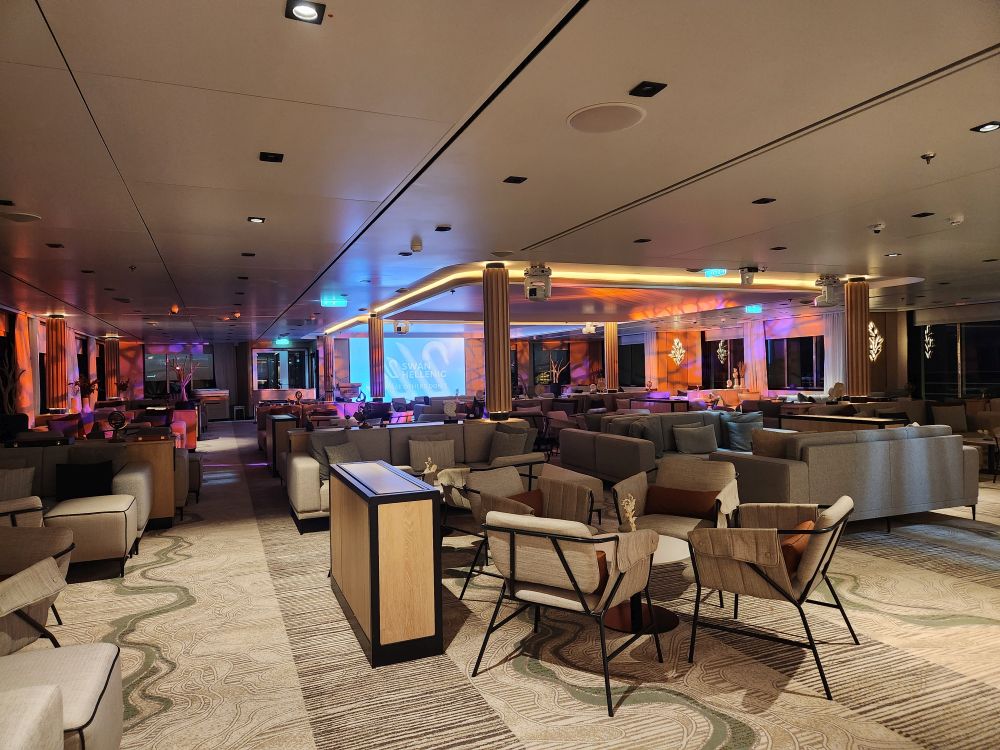 Nighttime goes by as normal, drinks in the Lounge with Allan, then back to the cabin for Netflix. The only entertainment is a piano player and singer, who is quite good, but we aren’t staying up here until 9:30 to hear him sing. We’re just as happy in our great big cabin on the comfy sofa watching tv and snacking on the provided snacks – yes – provided. A 3-tiered glass bowl type thing with m&m’s, nuts and dried cranberries. Perfect for evening munching!