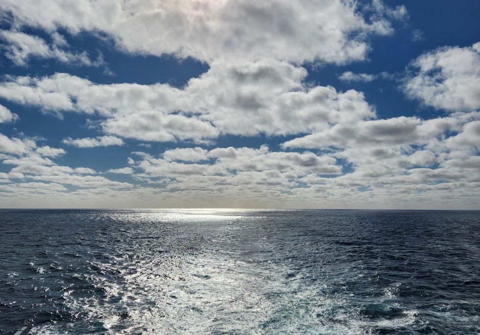 The seas are not so totally rough today, although there are swells and a decent wind, but it is nice enough we can do our loop walking for a bit before grabbing a lite breakfast in the club lounge.