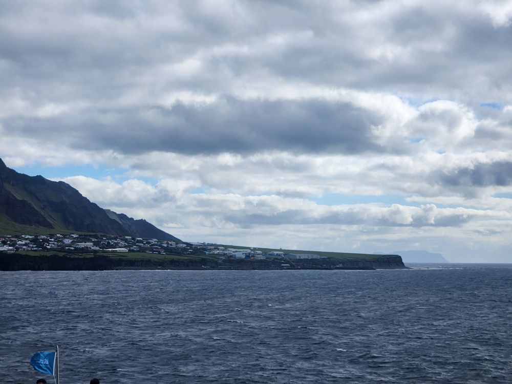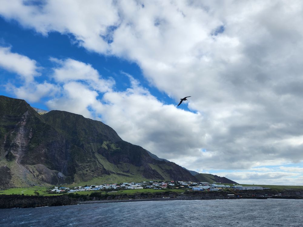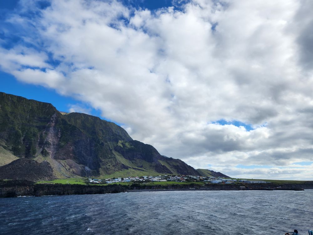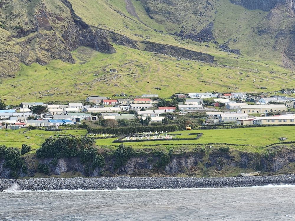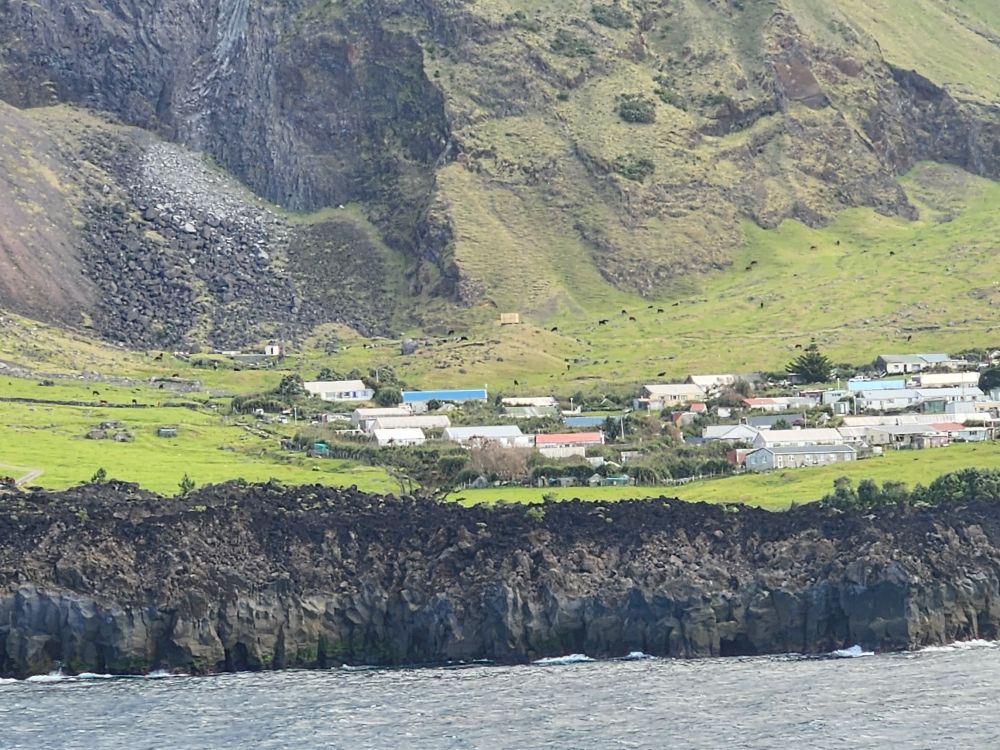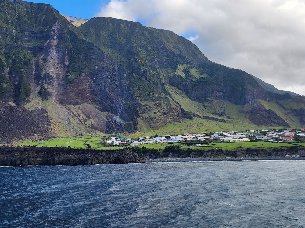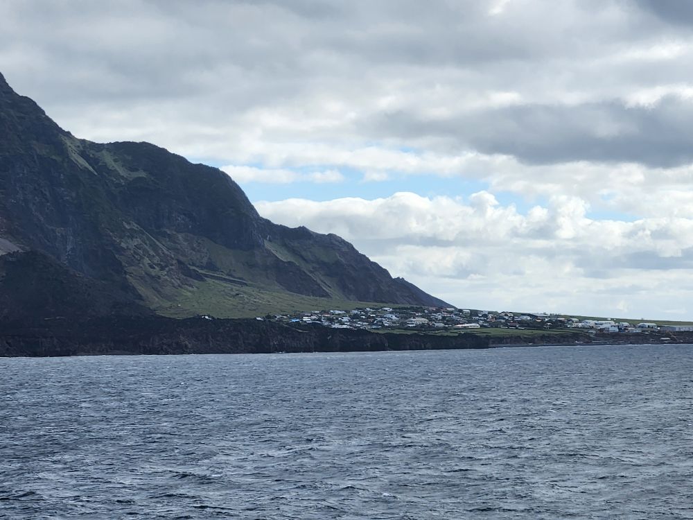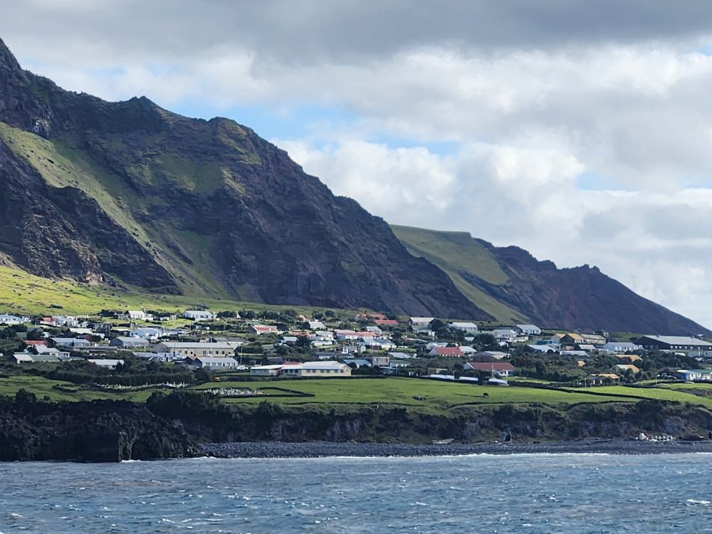 Rounding the top of the island, the little town of Edinburgh of the Seven Seas comes into view. What an amazing place! Considered the most remote inhabited archipelago in the world, Tristan da Cunha is located approximately 1700 miles from Cape Town, 1500 miles from Saint Helena, 2400 miles from Mar del Plata in Argentina and 2500 miles from the Falklands. Tristan, the main island, is the only inhabited island, measuring 6.8 miles wide and a total of 38 square miles – and most of that is inaccessible it seems. About 240 permanent residents live on the island, all with British Overseas Territories citizenship. The other islands – the Gough island reserve, a small inaccessible island and the Nightingale island are uninhabited except for a weather station on Gough island staffed with S. African personnel.