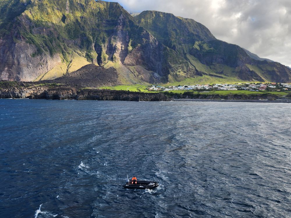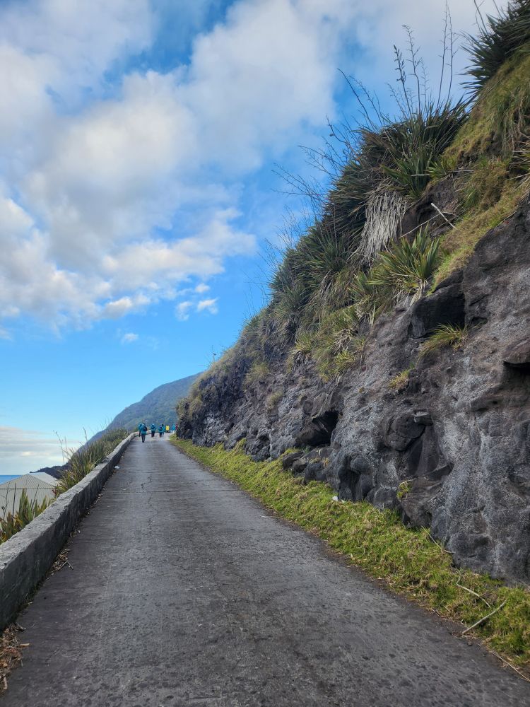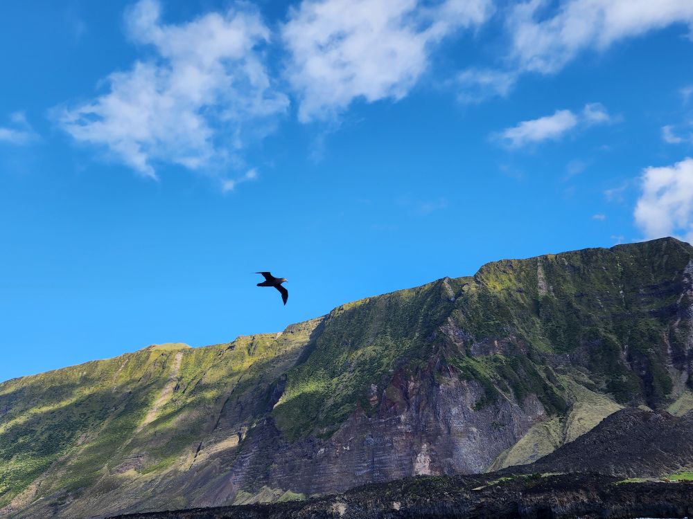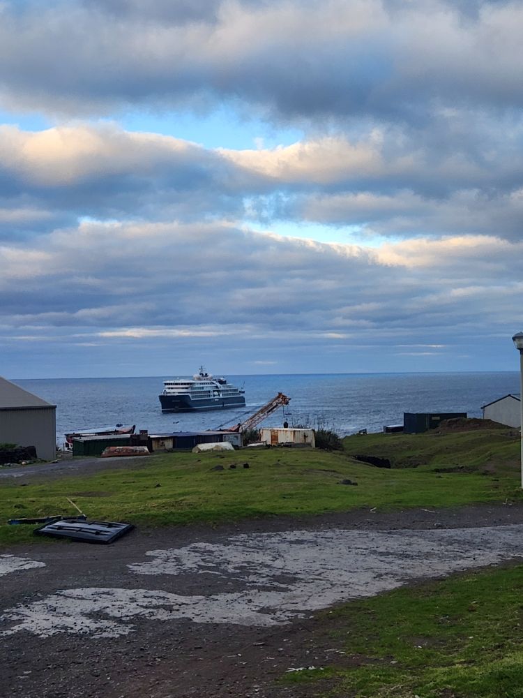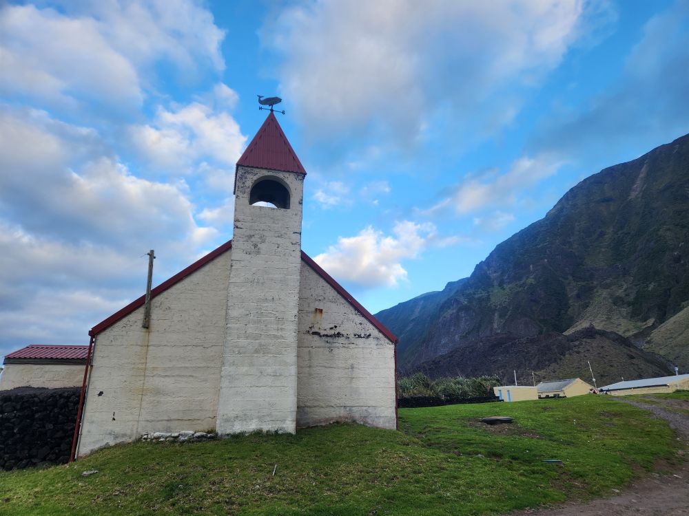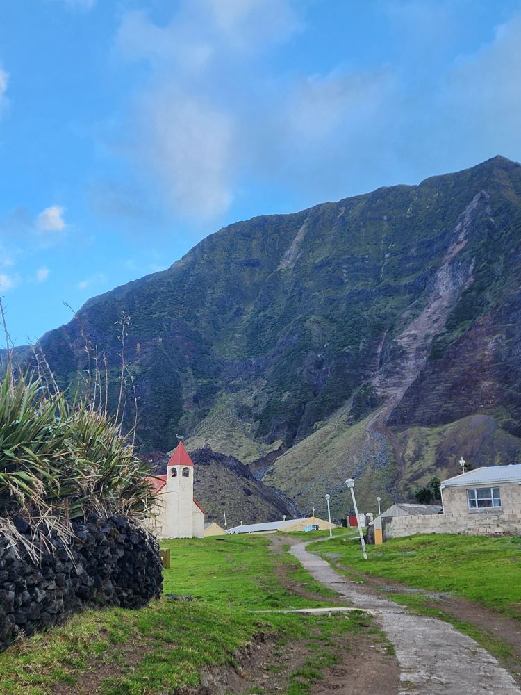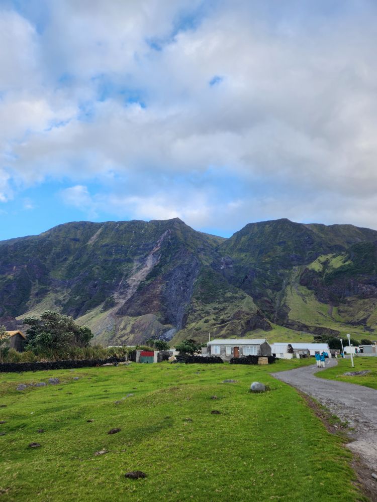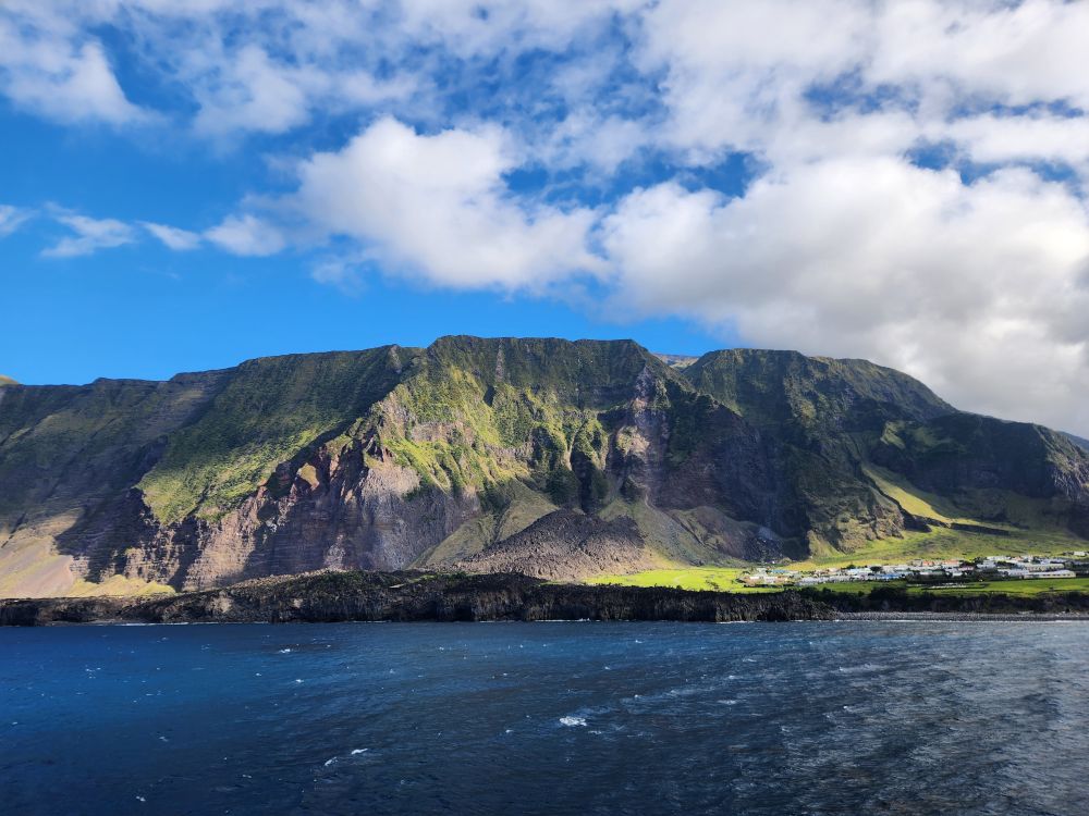 Rounding the top of the island, the little town of Edinburgh of the Seven Seas comes into view. What an amazing place! Considered the most remote inhabited archipelago in the world, Tristan da Cunha is located approximately 1700 miles from Cape Town, 1500 miles from Saint Helena, 2400 miles from Mar del Plata in Argentina and 2500 miles from the Falklands. Tristan, the main island, is the only inhabited island, measuring 6.8 miles wide and a total of 38 square miles – and most of that is inaccessible it seems. About 240 permanent residents live on the island, all with British Overseas Territories citizenship. The other islands – the Gough island reserve, a small inaccessible island and the Nightingale island are uninhabited except for a weather station on Gough island staffed with S. African personnel.