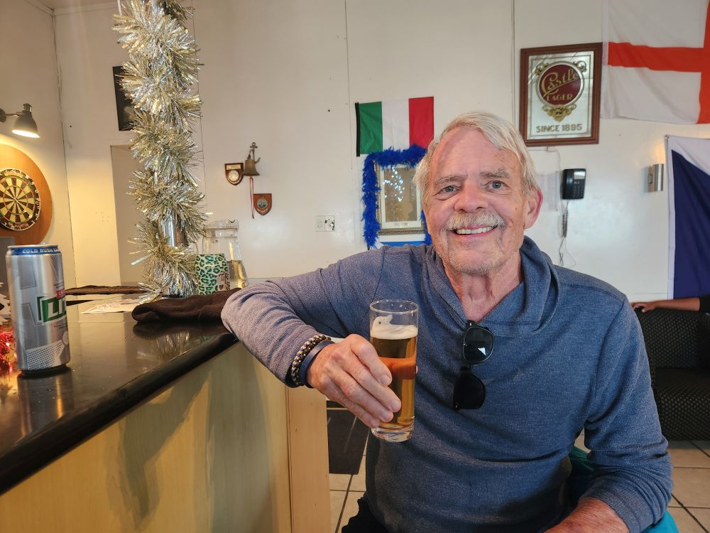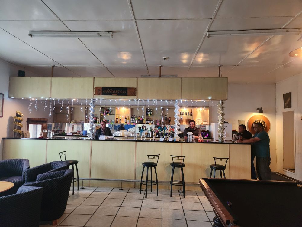 We have a mission though – and that is to get to the Albatross bar, the only bar on the island. Of course we do! Up at the top of the town, in “the largest building in the town,” as one of the local guides tells us, we find The Albatross, a one room bar with stools, comfy seating areas and the obligatory snooker table! This is a British territory after all. Plopping down on one of the available bar stools, we order 2 beers (sadly they did not have any white wine, only red) and an order of their rock lobster which is reputed to be the best in the world. Believe it or not, Wegman’s is the largest purchaser of their rock lobsters! And let us tell you, that rock lobster was absolutely fantastic. Best we have ever had – it definitely lived up to its legendary status. Plus, it was super cheap! You would think in that remote location everything would be expensive, but it wasn’t. $2US for the beer, $4US for the lobster. They take UK Sterling Pounds (which we had) or US dollars or Euros. It was great.