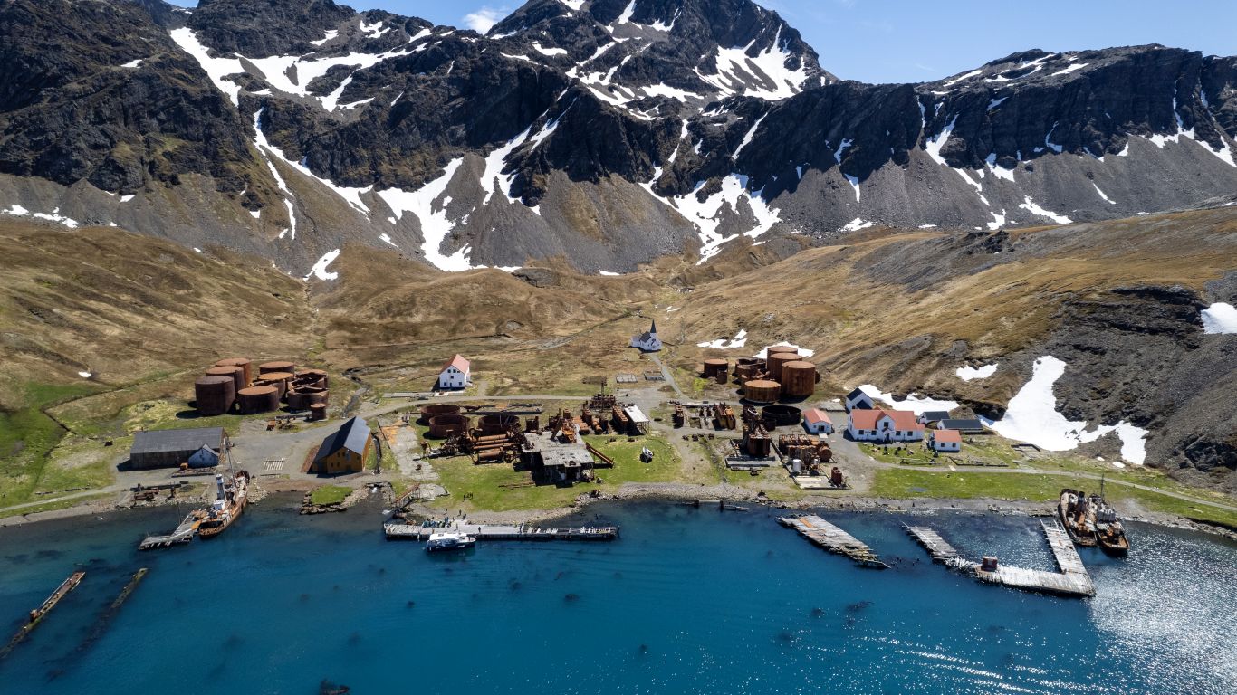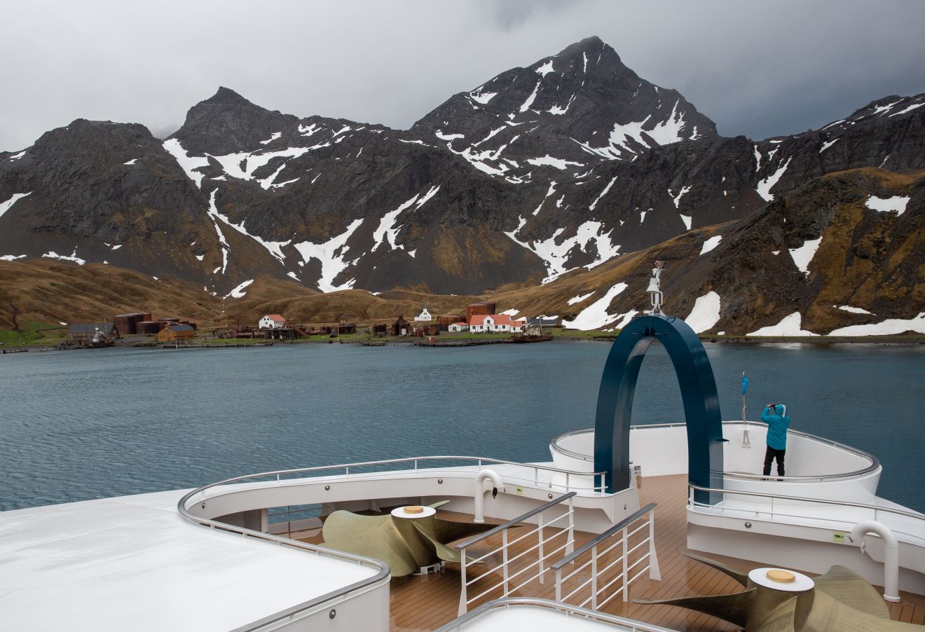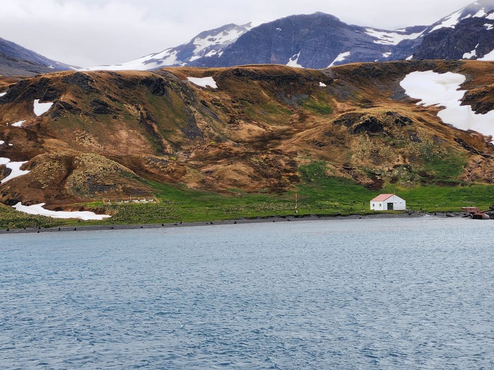 Back in the cabin, we change into our expedition gear – dry landing today, no need for our waterproof pants as we are using the tenders this morning – and head back up to watch our approach to Grytviken nestled in the crook of King Edward Cove. What a scene – what a place! 20 to 40 people live here for the summer doing research and manning the museum and post office. It must be absolutely amazing all alone for 6 months out here.