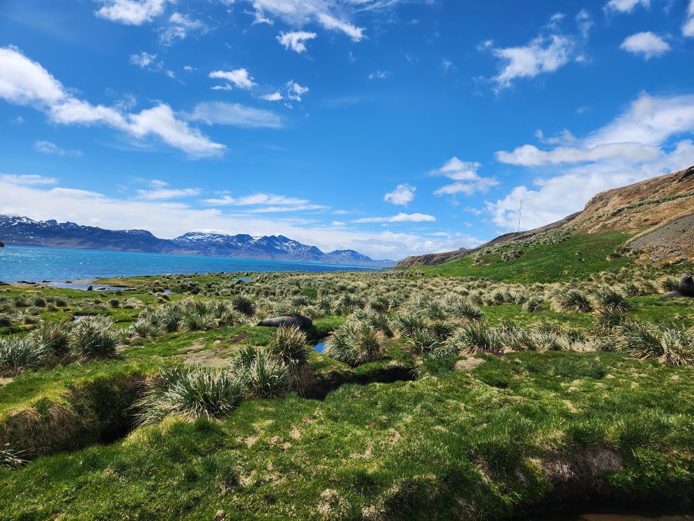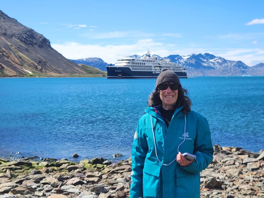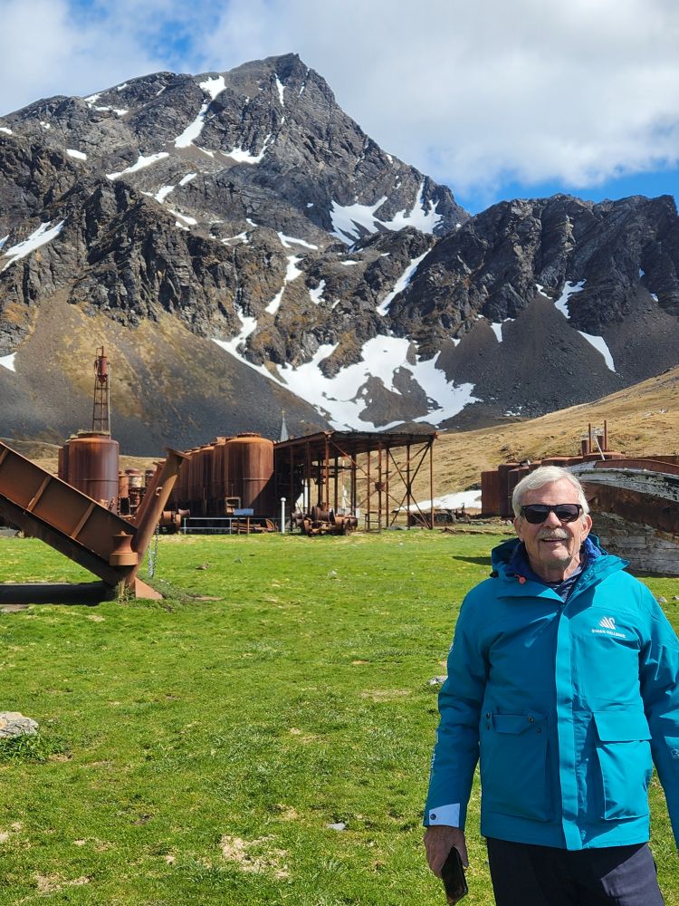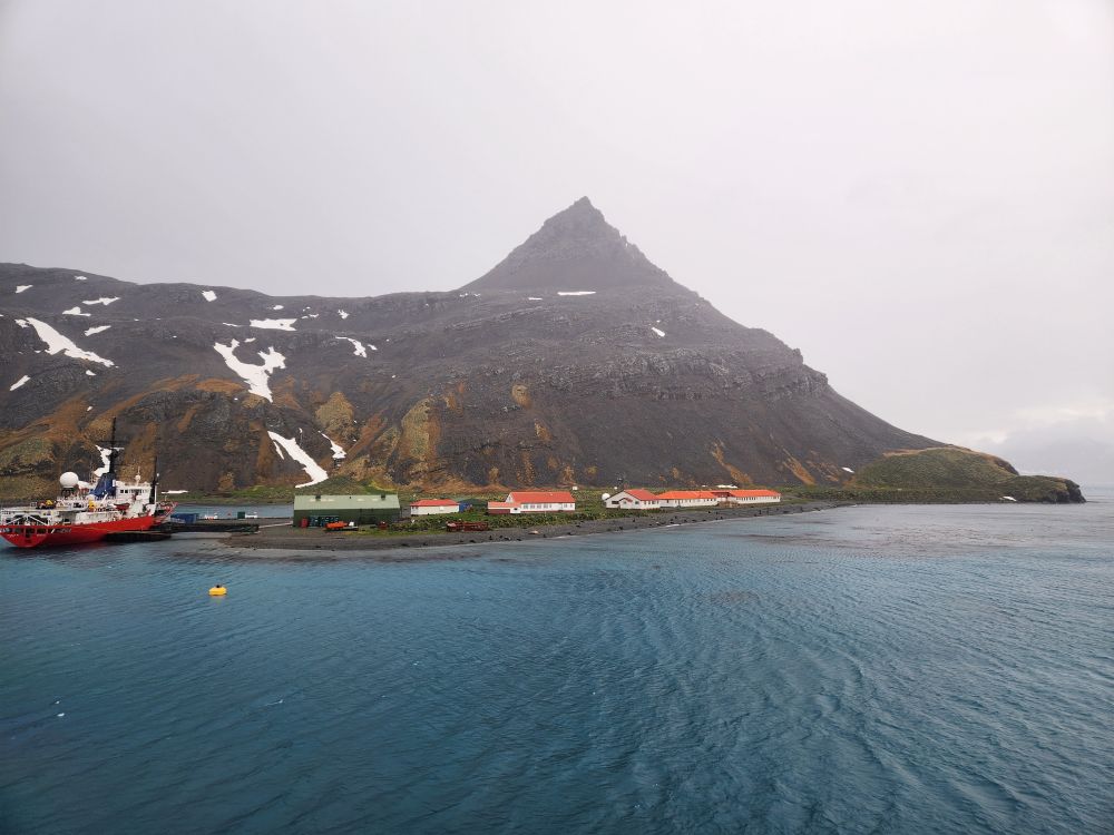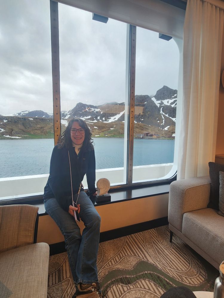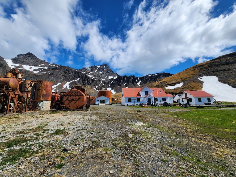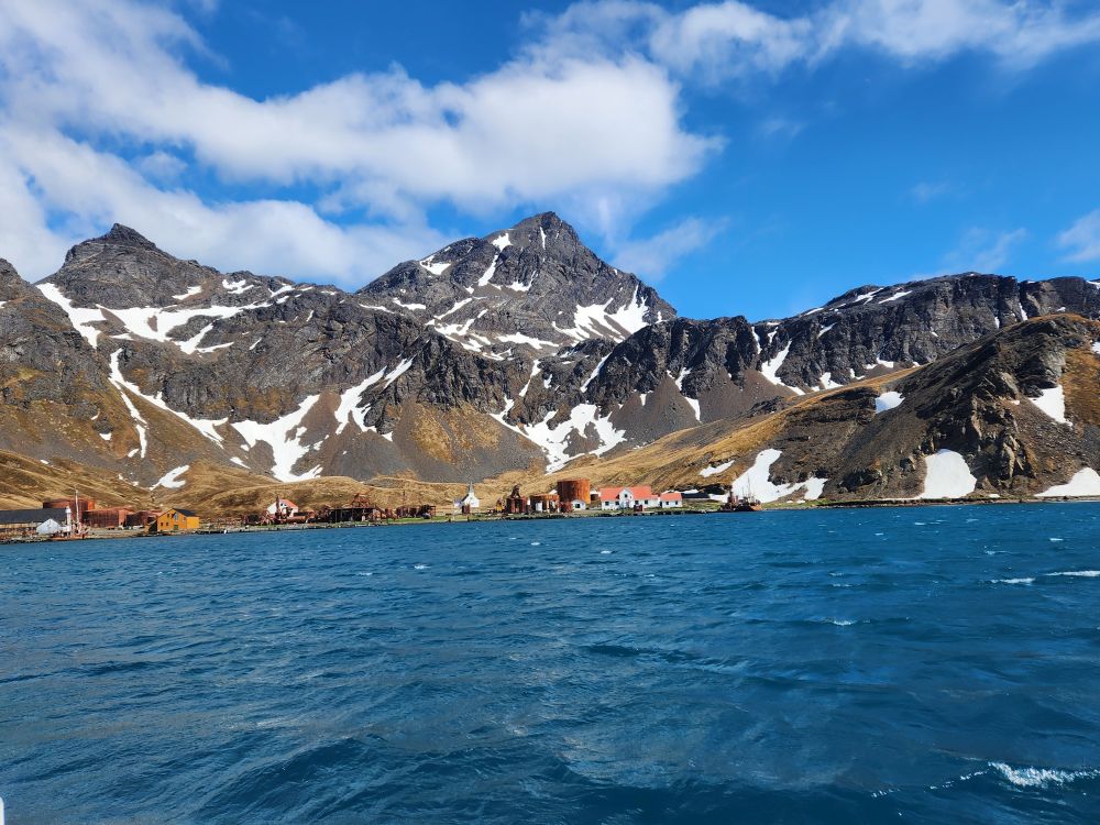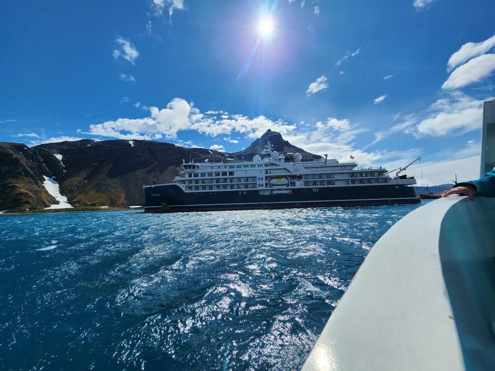 What started out as a cold and rainy day has now turned into a beautiful sunny and slightly chilly day. Fantastic. At the appointed hour, we all head up to the lounge for a Grytviken briefing by the onsite director of the South Georgia Heritage Trust, Deirdre Mitchell, a lovely Scottish woman who tells us all about the Trust and the restoration projects they have going on. All the while the S. Geogia customs agents and biosecurity folks are onboard clearing the ship for arrival.