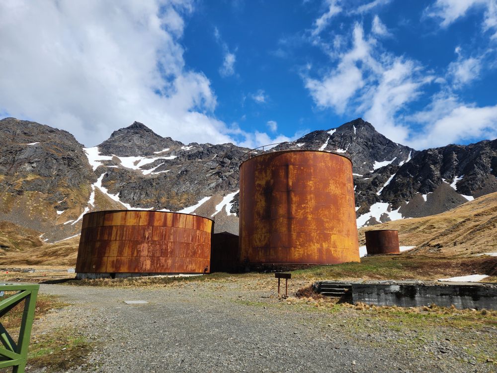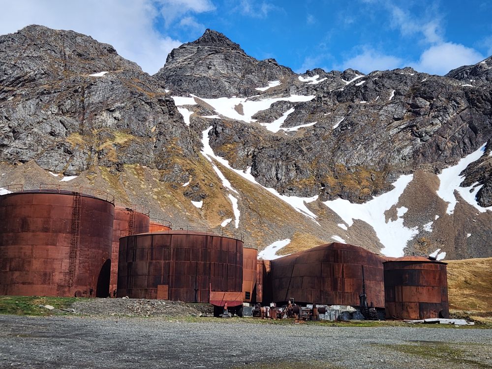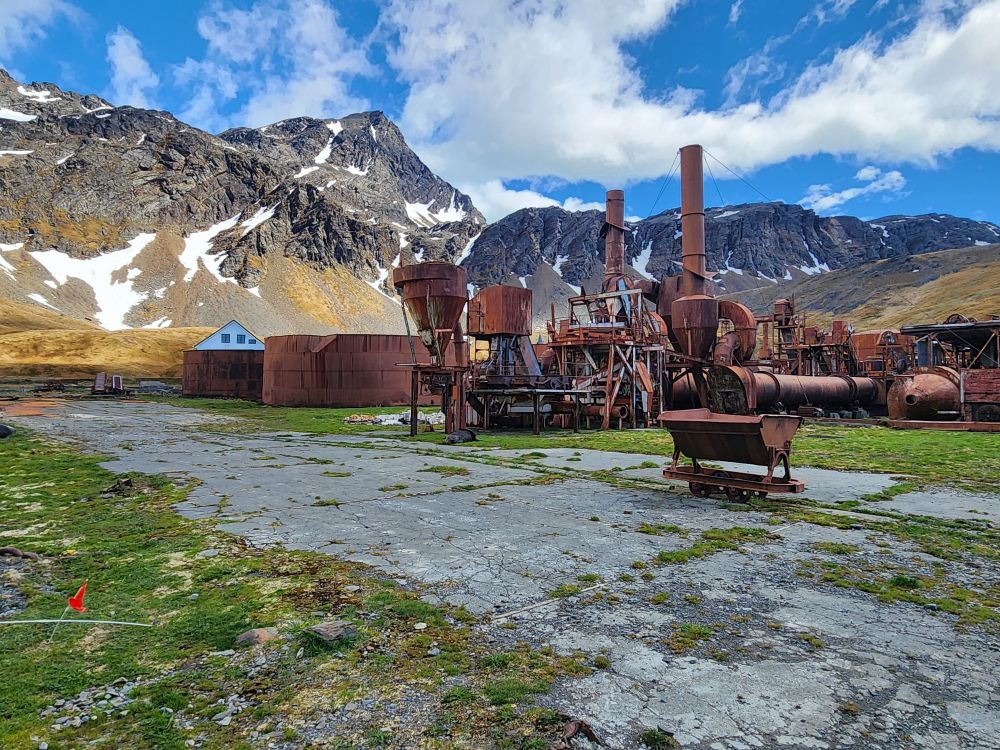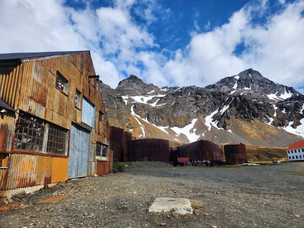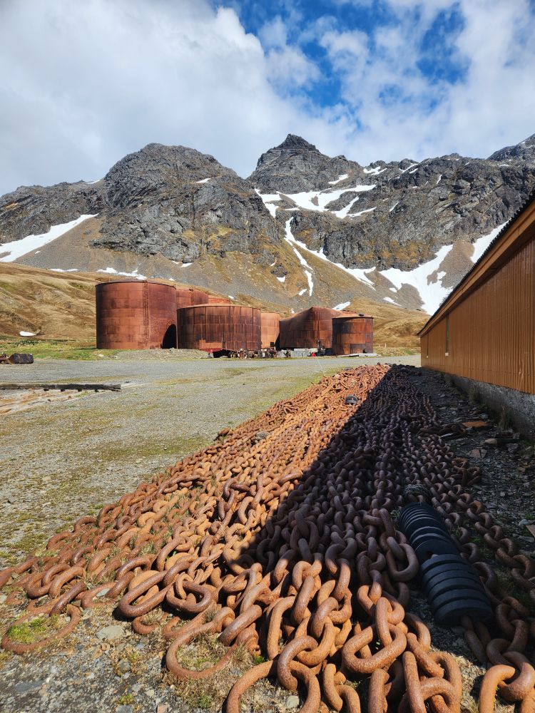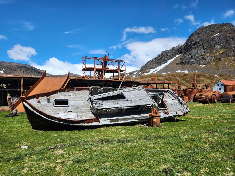 Back at the station, we have to wait on the path for a seal to cross, then we are free to explore the town. Grytviken operated as a whaling station from 1904 to 1964, what remains is a large portion of the buildings and operations – although many buildings have been removed during the environmental clean-up that began in 2003. You can see from the photos the warehouses, cookery buildings (for blubber, meat and bones!), and the plants where the whales and later seals were processed.