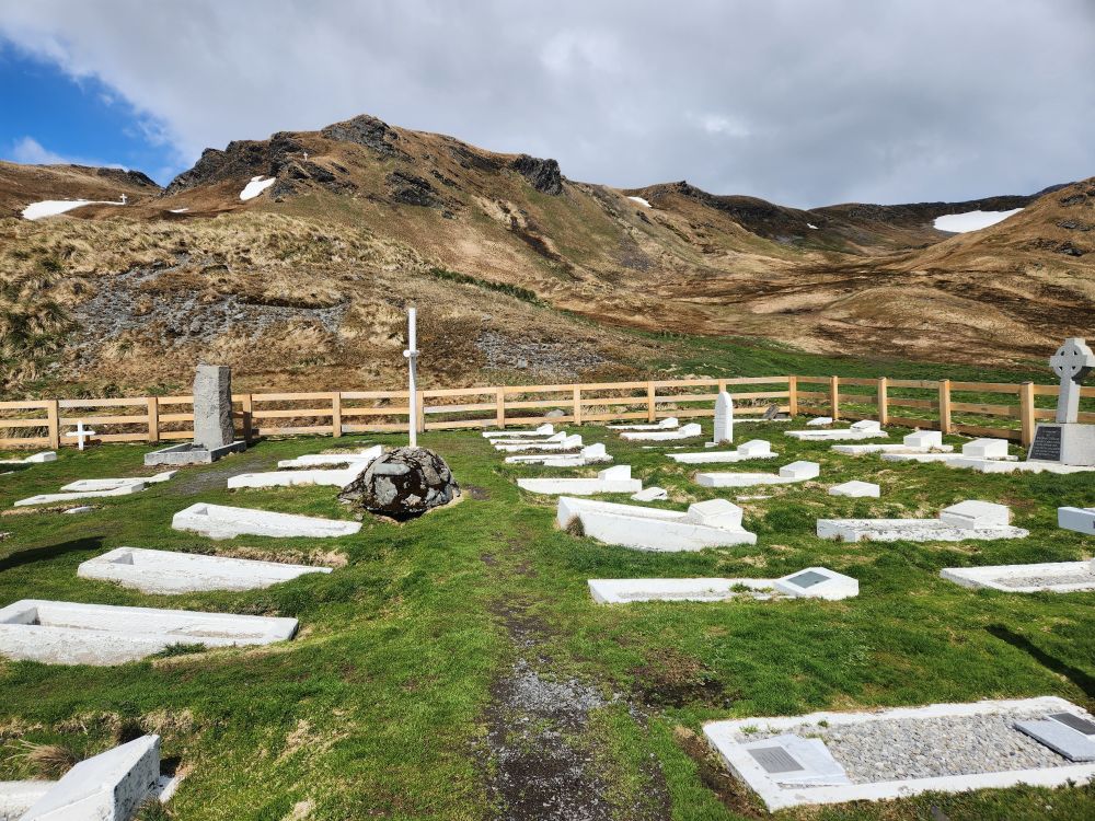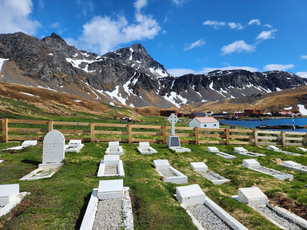 We wander through the pretty little cemetery, looking at all the headstones from the Magistrate of S. Georgia who died in an avalanche to the simple and unadorned grave of Frank Wild, Shackleton’s right hand man. We forget, though, to look for the grave of the Argentinean who was killed in the “conflict” in 1982. Oh well.