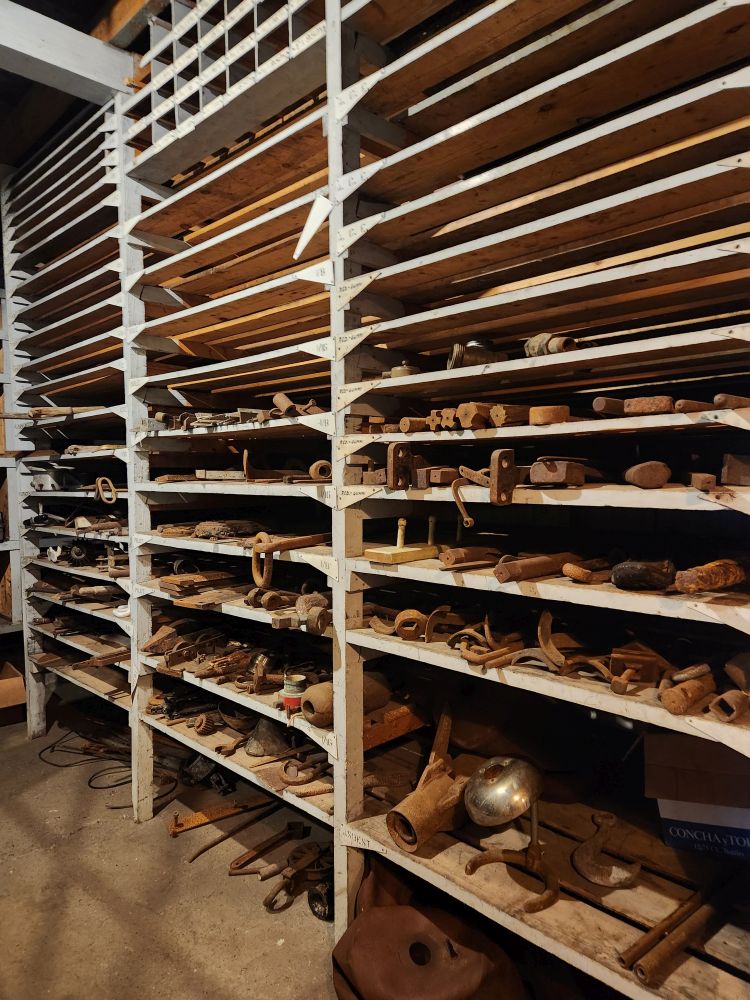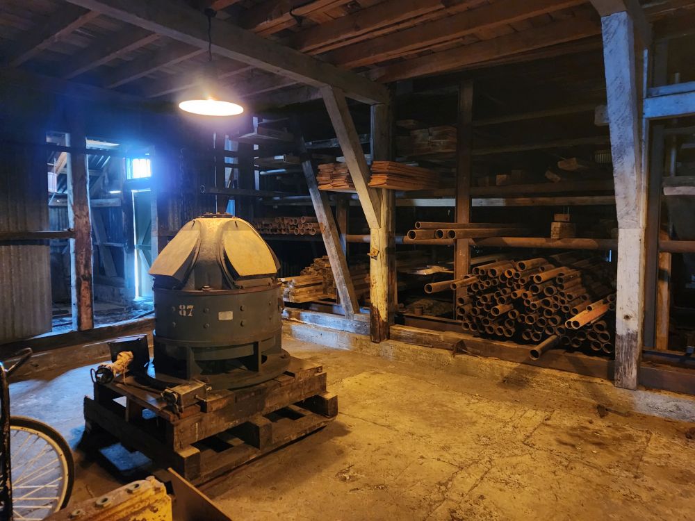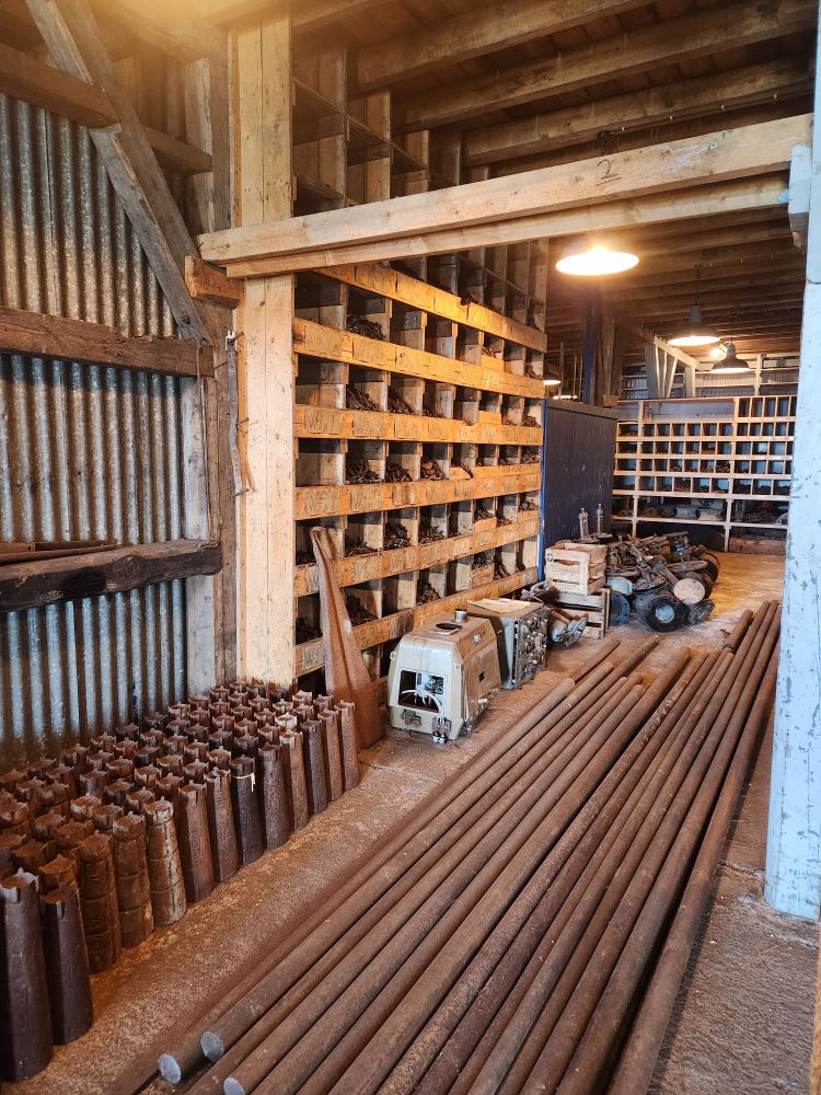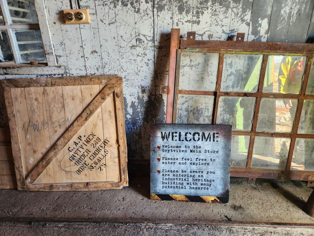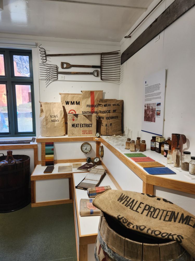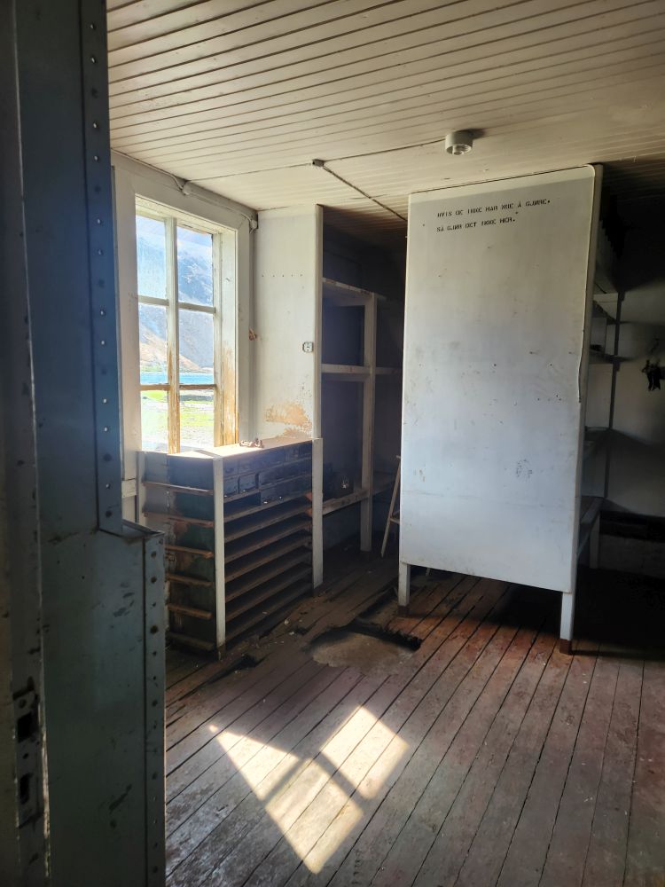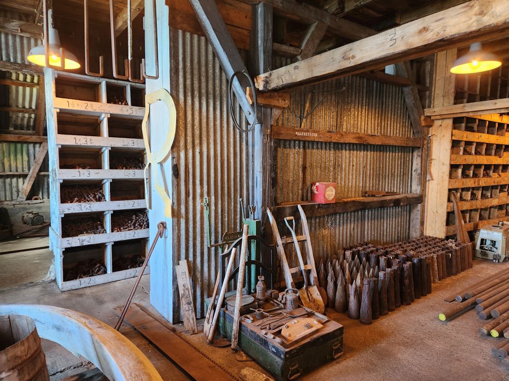 The first place we visit is the Main Store, newly re-opened tourists, is the equivalent to hardware stores of old – just industrial sized. Built in 1920 in between all the whale catcher maintenance workshops, this is where whalers would come for supplies to repair and maintain their vessels, as well as the factories used to process their catch. It’s an amazing building, filled with everything you could ever imagine you would need to repair a ship or machinery. Abandoned in 1964 when the whaling station closed, they just left everything we see today – pipes, valves, bolts, nuts, rivets, pumps, gaskets, harpoons – everything! The original wooden shelves are stocked full with equipment. Crazy they would just leave it. But better for us to get the feel of how the store looked and operated in the heydays of whaling and sealing.