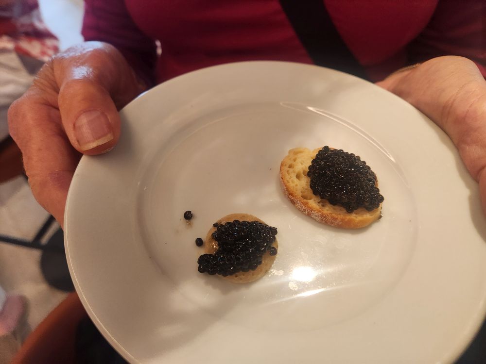 Tonight is the big Captain’s Farewell before our briefing. Can’t figure out why they are doing it tonight. Maybe to avoid the big blow up tomorrow when we don’t actually get into Ushuaia? Don’t know, but whatever the case, it is a nice evening – caviar and vodka shots (aha! That’s why the Russians stopped the Hunger Strike!!!), piano music from Henri and drinks and chats with everyone. The Captain explains about our delay and when to expect the pilot – he is still shooting for late afternoon/early evening tomorrow. We’ll see. Gennadiy shows us some of the photos he has taken and his amazingly awesome video, all of which we will be able to download a few days after the end of our trip. We now have the QR code! So excited.
