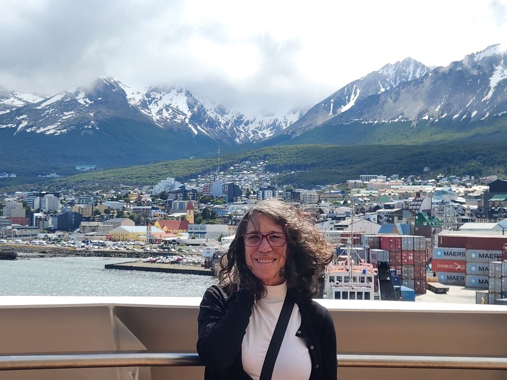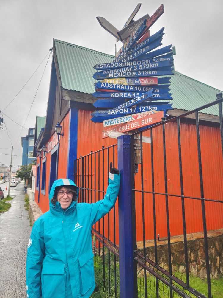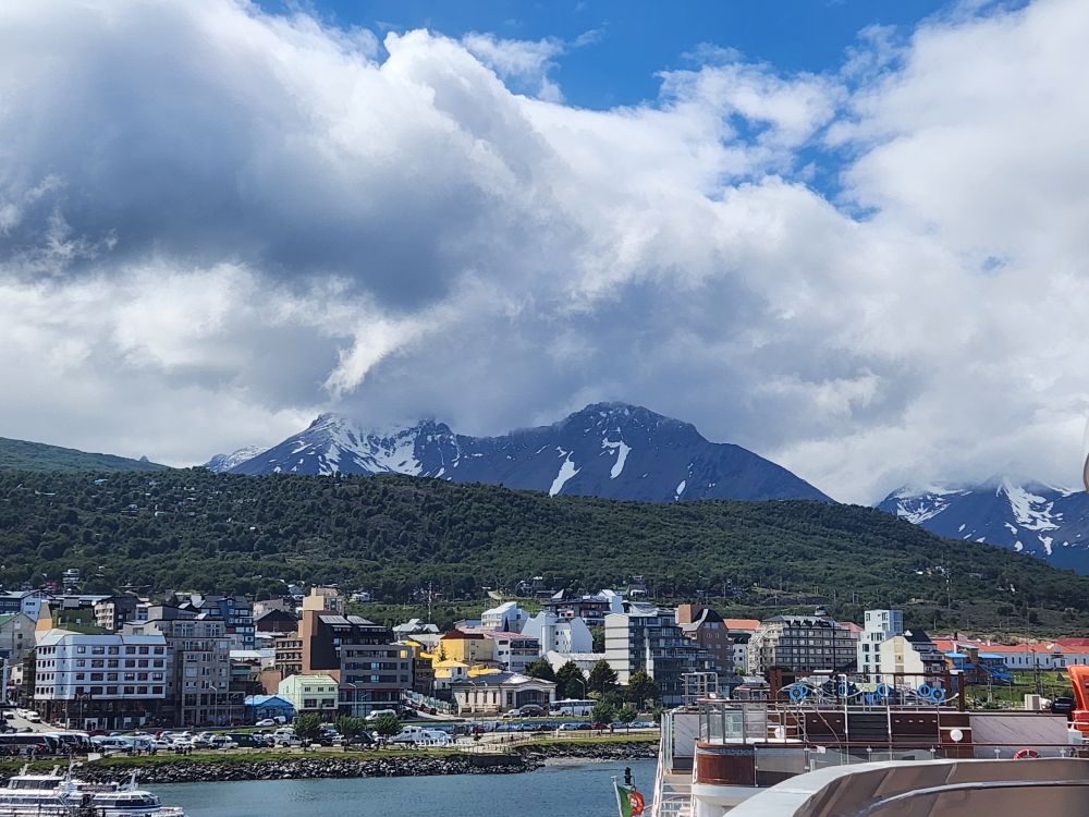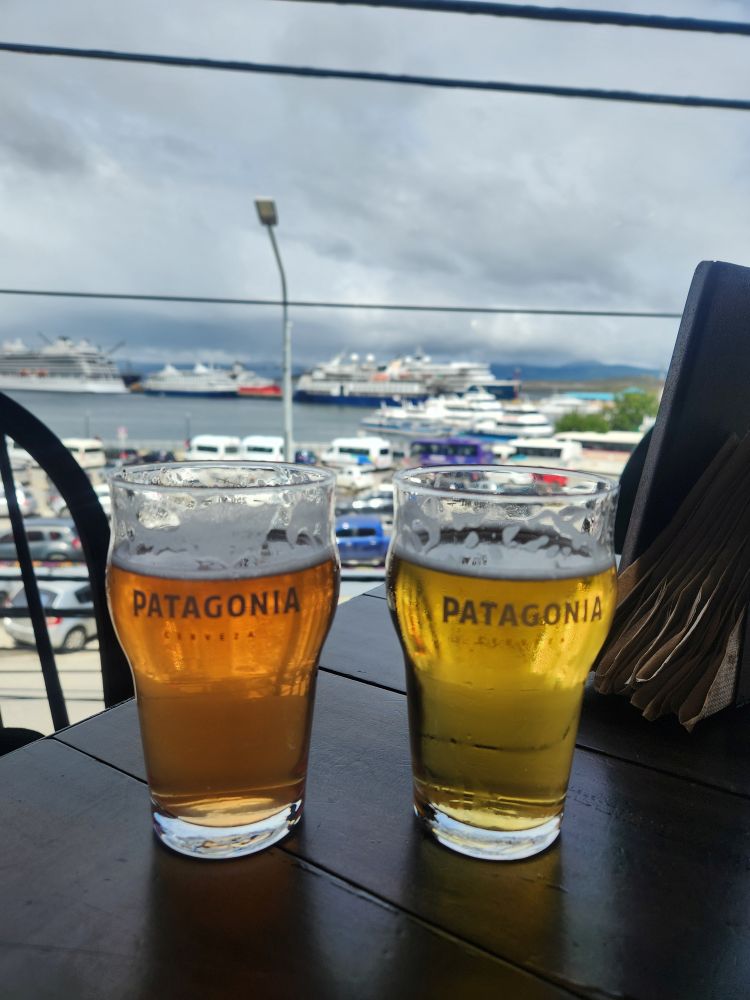 Deciding to walk around a bit as it is still too early to head back to the ship, we hit a couple souvenir shops, making a fast friend of another cruise passenger (from another ship) after she overhears us say “Unless you really have to buy something, there is no need to be here – run!” She laughs so hard and completely agrees – I mean the prices are ridiculously crazy high. We bought some really cute little penguin coasters cheap at the museum store, and that was it. Shopping a bust – we make our way to Patagonia Brewery, which was closed for renovation the last time we were here. Grabbing a great seat upstairs at the windows, we look out over the now jam-packed dock while we enjoy our beers (after the waitress dumped one all over the table – missing us, but not the phone or backpack! Fortunately the phone was no worse for wear.)
