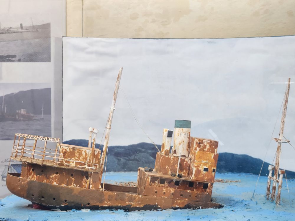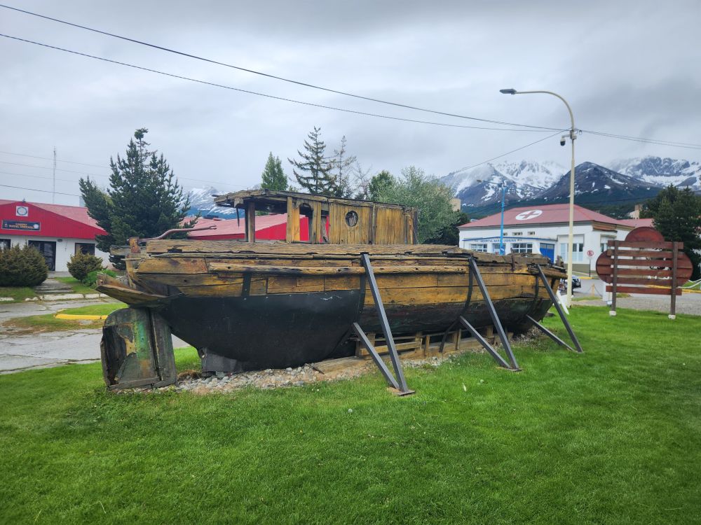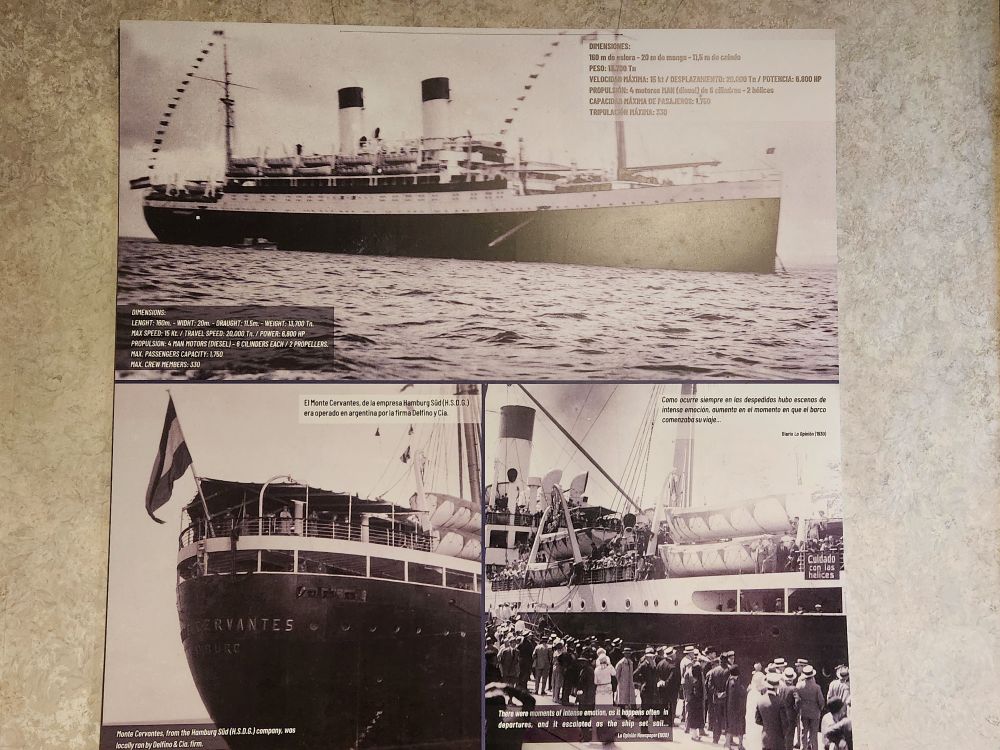 A large room of displays focused solely on the 1930 wreck of the Montes Cervantes, billed as the most important shipwreck of the Beagle Channel. The ship was on a “touristic” sailing, heading to the Fuegian channels when it stopped in Ushuaia for a port call. Shortly after leaving, a navigational error caused the ship to hit rocks and begin to sink. The Captain managed to turn the ship toward the coast to run it ashore and provide more time to evacuate. All passengers and crew were safely evacuated to Ushuaia and in a matter of hours, as the story goes, each household in of Ushuaia (800 residents total) took in the 1400 passengers and crew, housed and fed them until rescue ships could come to take them back to Buenos Aires, 6 days later. Pretty impressive. The Monte Cervantes lay on its side in the Beagle Channel for 14 years after the wreck, until 1943 when an Argentinian businessman began refloating operations. During the final stages of flotation, 10 years later, as the ship was being towed toward Ushuaia, the Monte Cervantes finally sank forever in October of 1953.