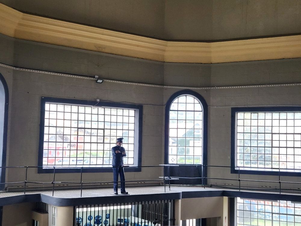 Moving on – we bob and weave our way through the crowds to get through the prison wing, heading upstairs for the rest of the Maritime museum. Upstairs we find the Guard – who watches all his charges on both floors (fun!) – plus a look out onto the balcony surrounding the Central Hall atrium. A cute representation of how it once looked as a prison, complete with additional guards and inmates on the ground floor.