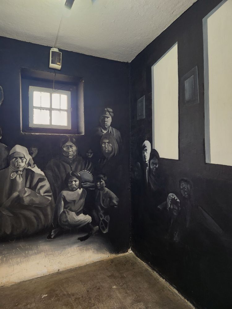 Back downstairs, we head into the art gallery pavilion which contains some really stunning pieces – including an amazing mural that wraps around the walls of one of the cells.