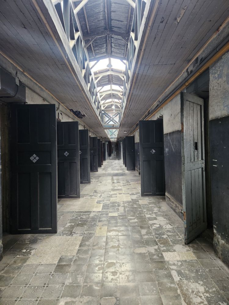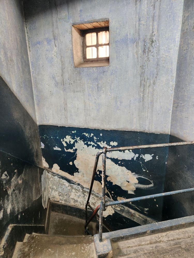 Dragging me away from the penguins, we enter into the Historic Pavilion which is essentially an un-touched cellblock wing where no restoration or repairs have been made. You can get the real feel of what it would be like to be housed in this prison – complete with no heat and virtually open windows. Dark, damp, brutal. The stairs alone are frightening in their narrow steepness. And the rest? Shivers….