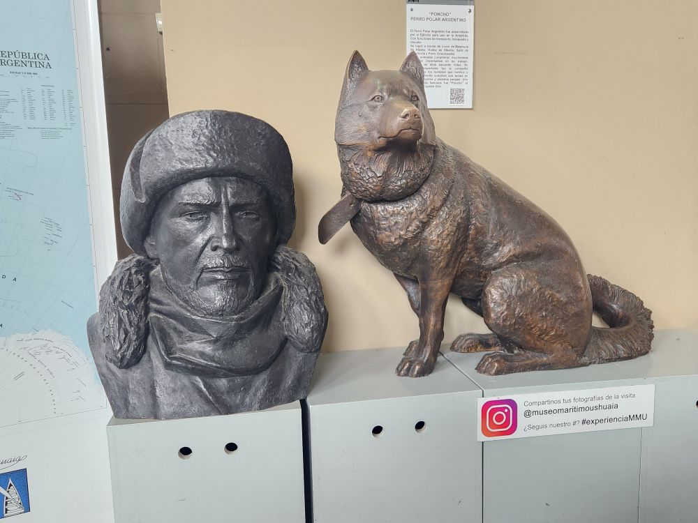 The rest of the museum is light on displays – a few more pieces of art, a bronze bust of Poncho, the Argentine Polar dog that was said to be able to warn men about cracks in the ice and snow, with his handler, Captain Giro, a couple of gift shops (everything is so expensive here!) and that was about it.