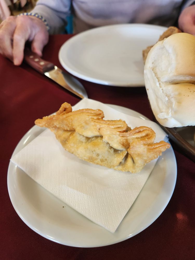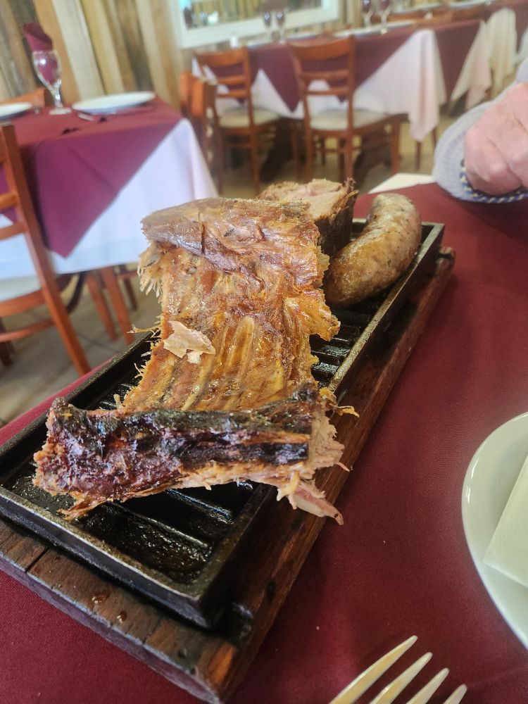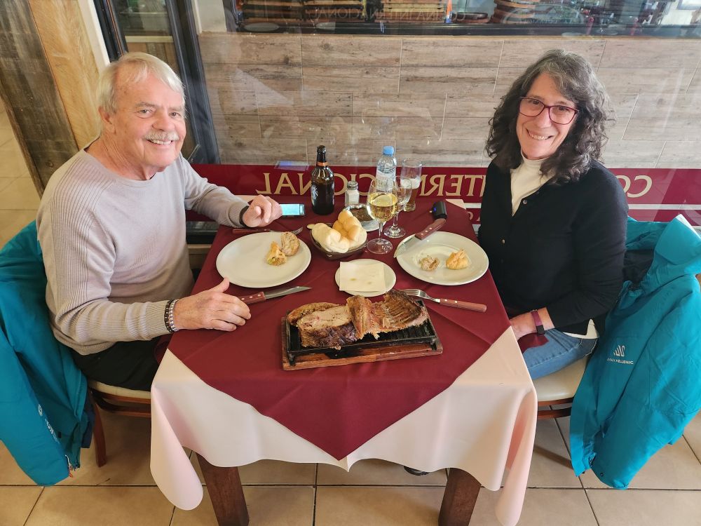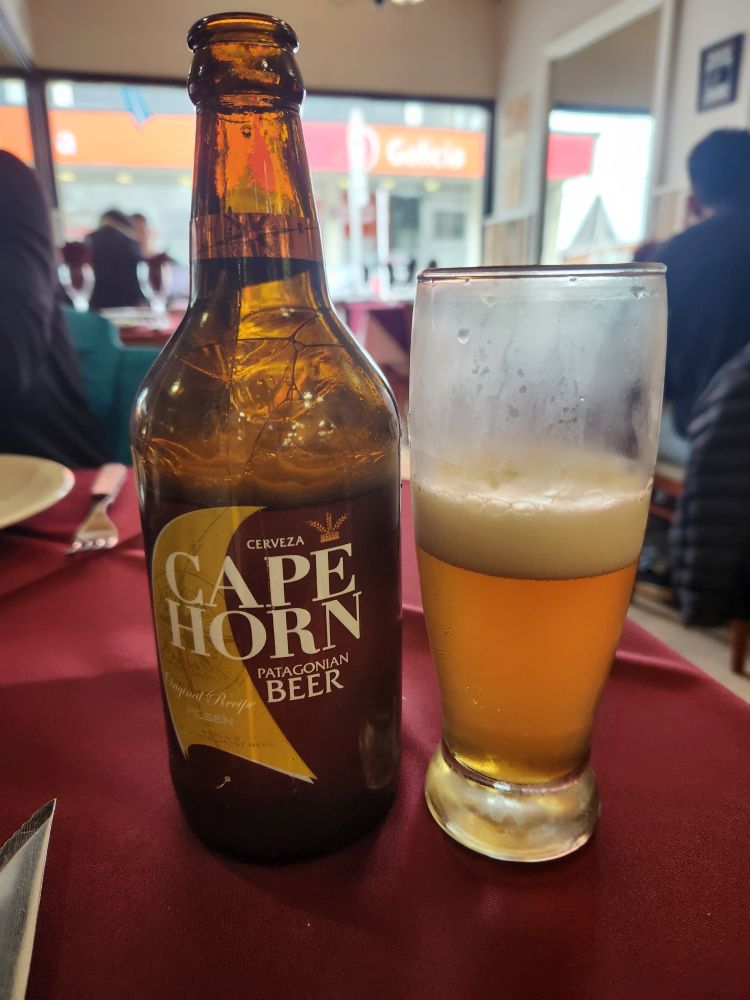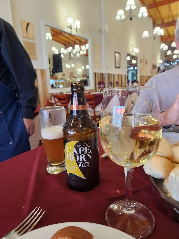 Arriving at Estancia, the great Parrillada where we ate oh so long ago (and that Javi recommends) we plop down at a cozy table for a meat-palooza feast. Well, ok, we aren’t going whole hog here (excuse the pun), but we do want some of their great wood roasted lamb and an empanada. And yes, it is really expensive here as well, not only from the “tourist” pricing, but also the darn inflation. It is supposedly better – but it is still crazy expensive. We end up with a nice meal – just enough to keep us sated – along with an excellent pour of wine, Cape Horn beer and a lovely server. Unfortunately, another server gives us our check and then proceeds to rip us off for the tip – my fault – I wasn’t tracking exactly how much it should be – but still. The hazards of over-touristed venues. Ah well, the meal was still excellent – nothing taking away from that.