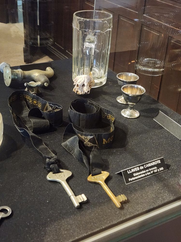 There tons of photos, explanations, a model of the ship and artifacts saved from the shipwreck – including these old school keys on a lanyard that remind of our SH Diana old school keys, and we find hysterical. (We show the picture to Robinson, our wonderful Guest Relations pal – explaining that these keys are from 1930 but are just like ours! – which he completely gets and giggles along with us.)