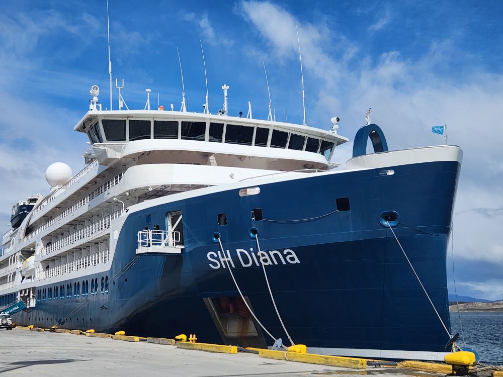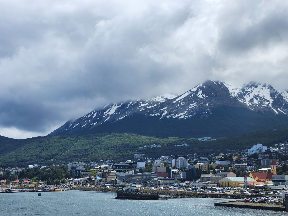 Finally we make our way back to our final night aboard the lovely Diana. Packing finalized, we head upstairs to take some last pictures of the town – including the wreck of the tugboat Saint Christopher – and the snow capped mountains in the distance. So pretty.