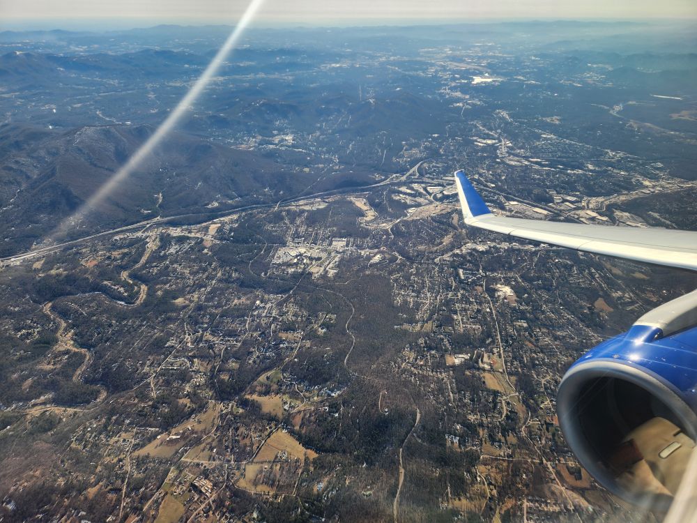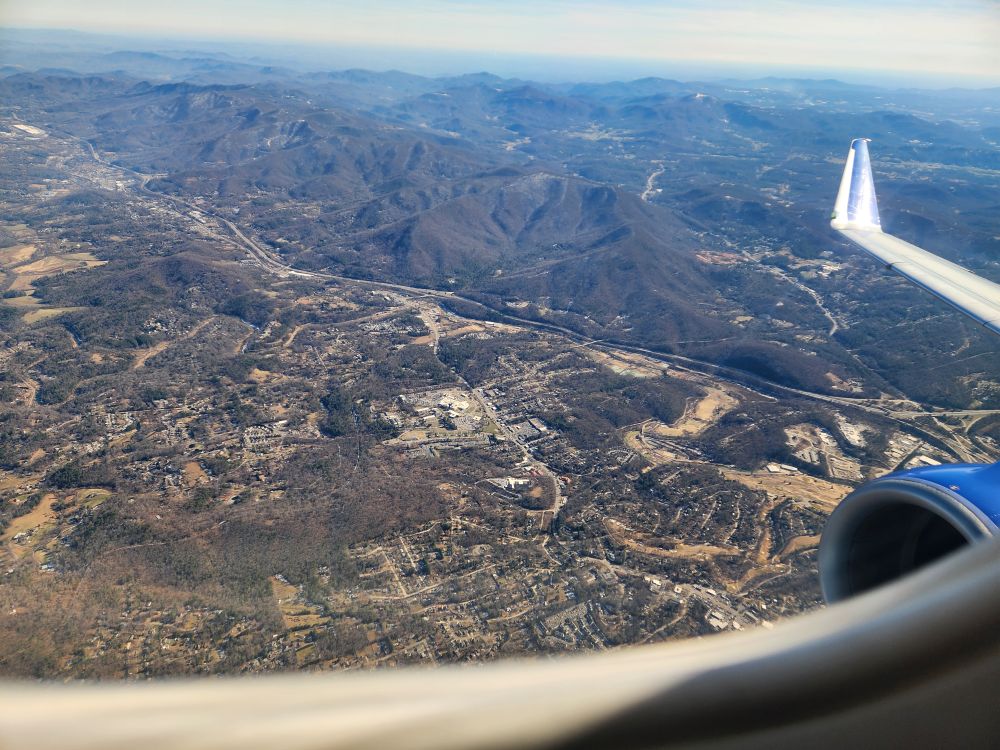 Today begins our 45-day SE Asia/India odyssey – leaving one temperature extreme for another. We will encounter something like a 70 degree temperature swing from the time we awoke today to the time we arrive in Bali in 3 days. Phew – this will be quite the change! Our travel starts off seamlessly today. Lisa has wonderfully offered to drive us to the airport and deposits us there in no time at all – from here, it is just a short flight up to Newark – flying first over the gorgeous, yet still devastated WNC mountains (you can still see the mud/silt reaching out from the rivers) and onto New Jersey, where the water is far more pristine, and cold! That’s ice down there….