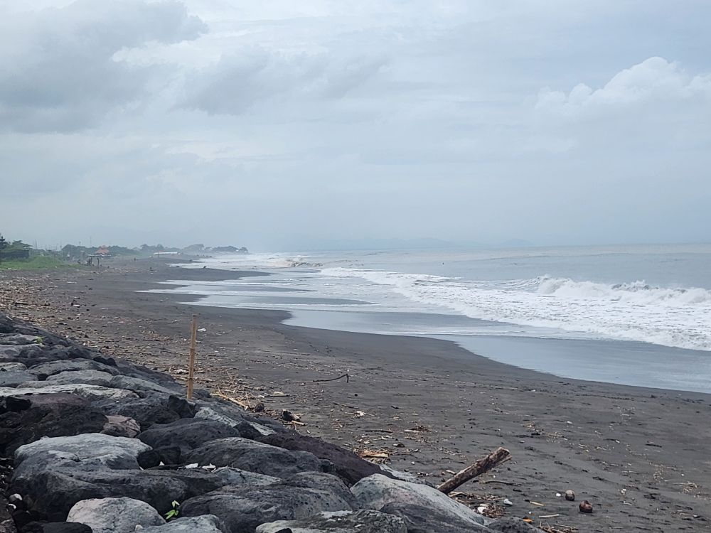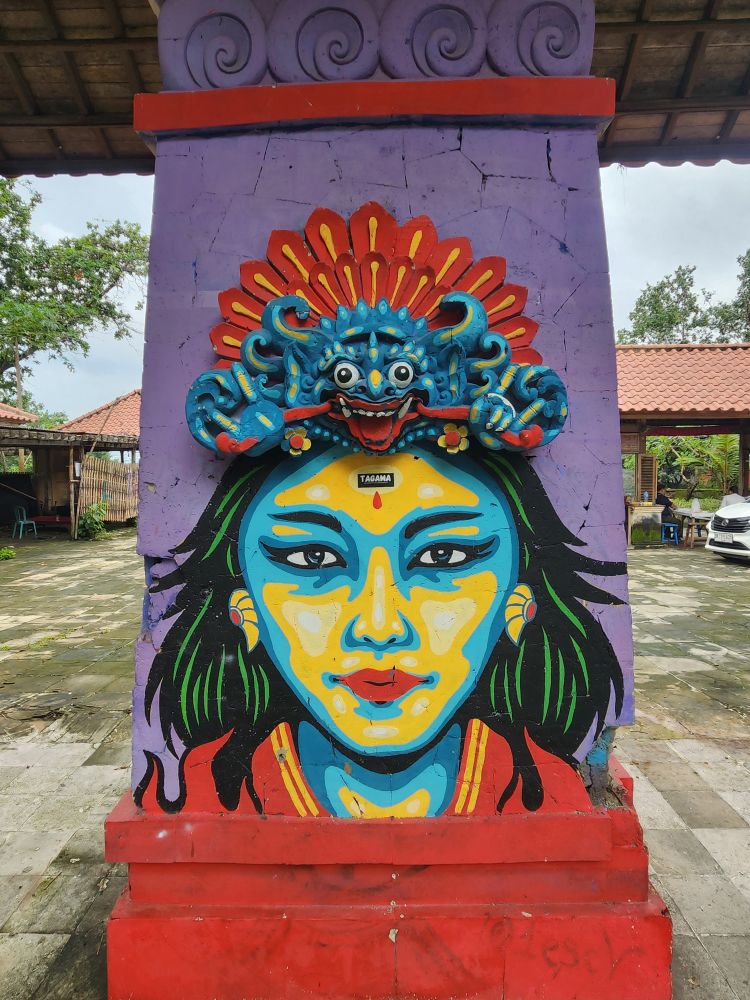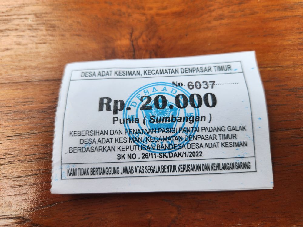 Our Grab driver dropped us right at the front entrance, where we pay our 20,000 rupiah each entrance fee. Supposedly the guys out front as well as the fee aren’t “official,” it is just a way for the locals to make some money. But they give us tickets that say it is a donation for “the cleanliness and resilience of Padang Galak Beach Sand, Keisman Traditional Village.” Hey, it was only $1.20 each – we can spring for a donation like that to help the village. In we go!