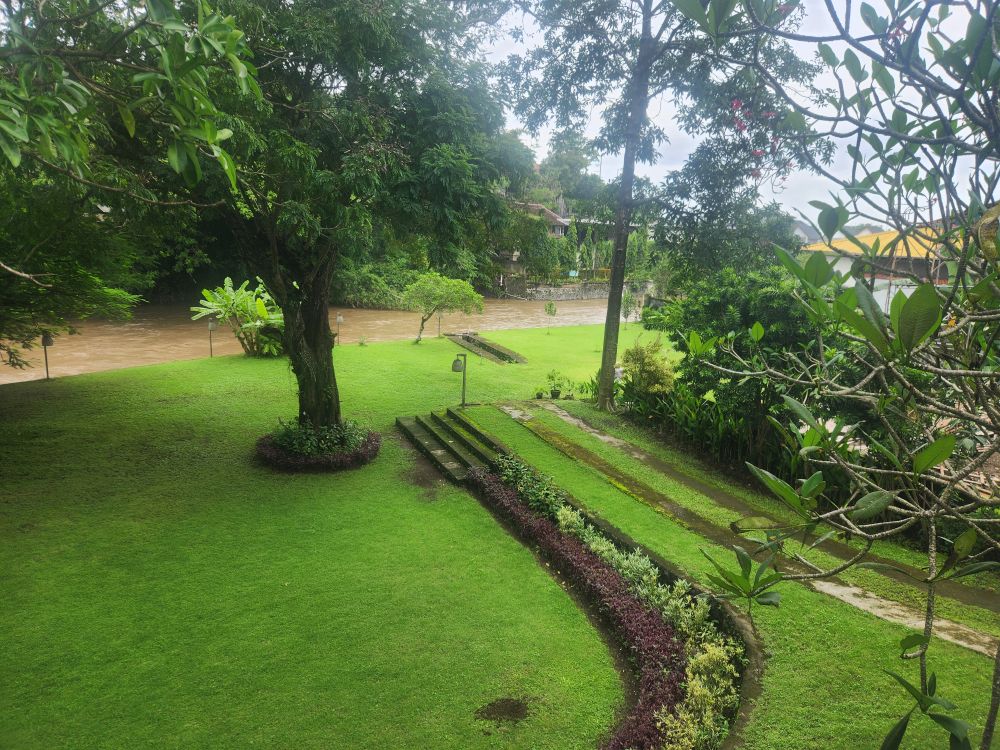 Lunch handled, we order a Grab and head back to the Villa for the pool. Did I mention it is abhorrently hot and humid? That pool is a godsend! We hung out at the Villa the rest of the afternoon in the rain. Definitely the rainy season here. Adi, the Villa manager told us it has been even rainier than usual and last week was just awful (thank you climate change)! We’re still stuffed from lunch, so decide not to bother dodging the raindrops and stay in for dinner of eggs and toast. Works perfectly! In combination with a night of TV and we are happy campers on Bali day 3.