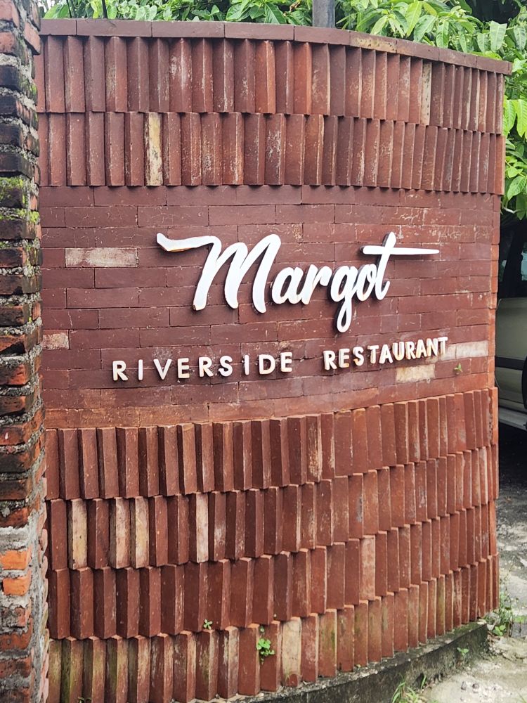 Walking down the beach the other way, we pass a little shrine where a big ceremony was taking place (didn’t feel comfortable taking pictures) then back out onto the street to walk up the hill away from the beach to the Margot Riverside restaurant we had researched for our lunch.