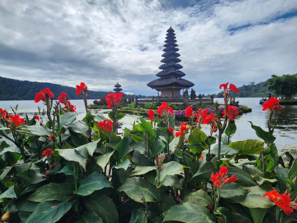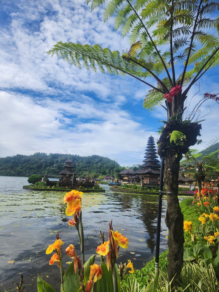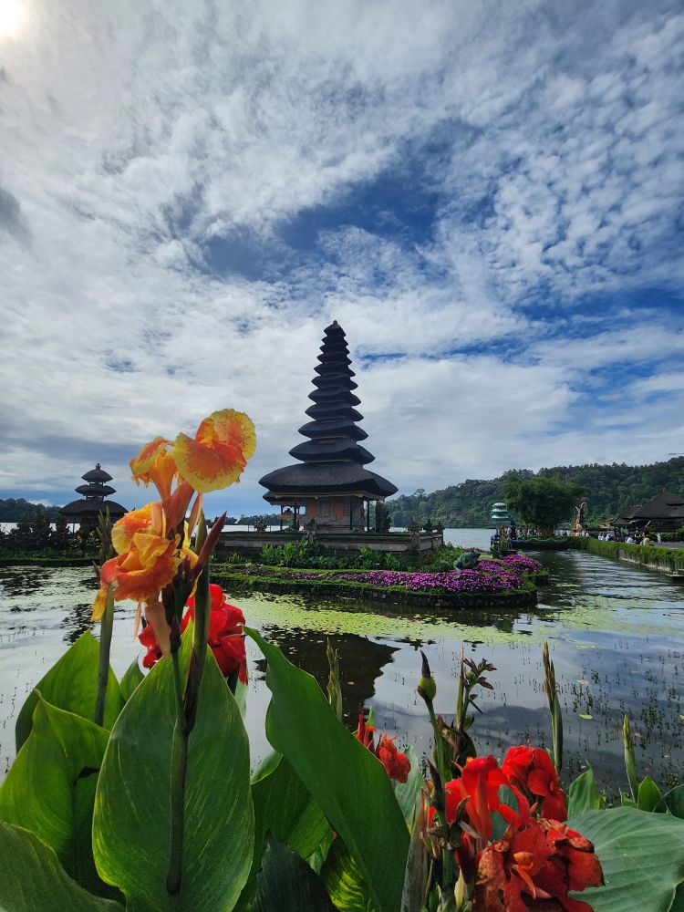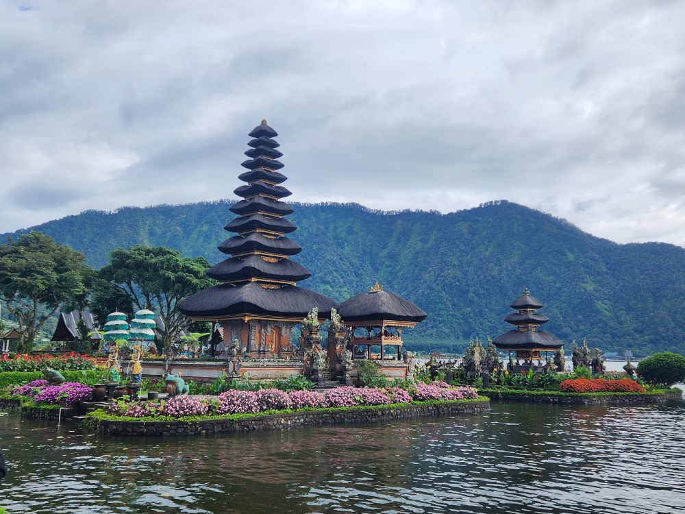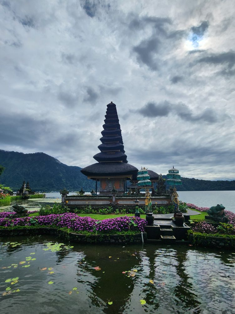 Towards one end of the lake sits Ulun Danu Temple, the first stop on our all day tour. Built for the Goddess Danu, the queen of water, lakes and rivers. There are 4 sacred buildings: Linga Pura, 3 levels high, the place of worship to Shiva; Pura Puncak Mangu, 11 levels high, dedicated to the god Vishnu; and Pura Teratai Bang and Pura Dalem Purwa, the main temples, to worship Sang Hyan Widhi, where people pray for fertility, prosperity and well-being. It is such an important temple, it even appears on the 50K Rupiah note.