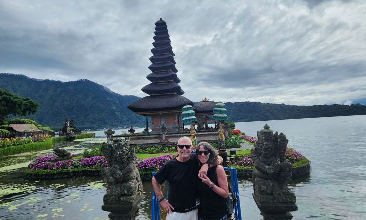 Our driver arrives right on time – Dadek – and off we go on our full day odyssey to the center of the island for temples and rice fields. Dadek is adorable, young and sweet, with an awesome playlist that keeps us musically entertained on our long, long drive. It takes almost 2 hours to get up to Ulun Danu, our first stop in the mountains on Beratan Lake. The traffic is terrible, and once we are out of the more populous areas, the roads are teeny and narrow, winding up into the mountains. Slow going all the way!